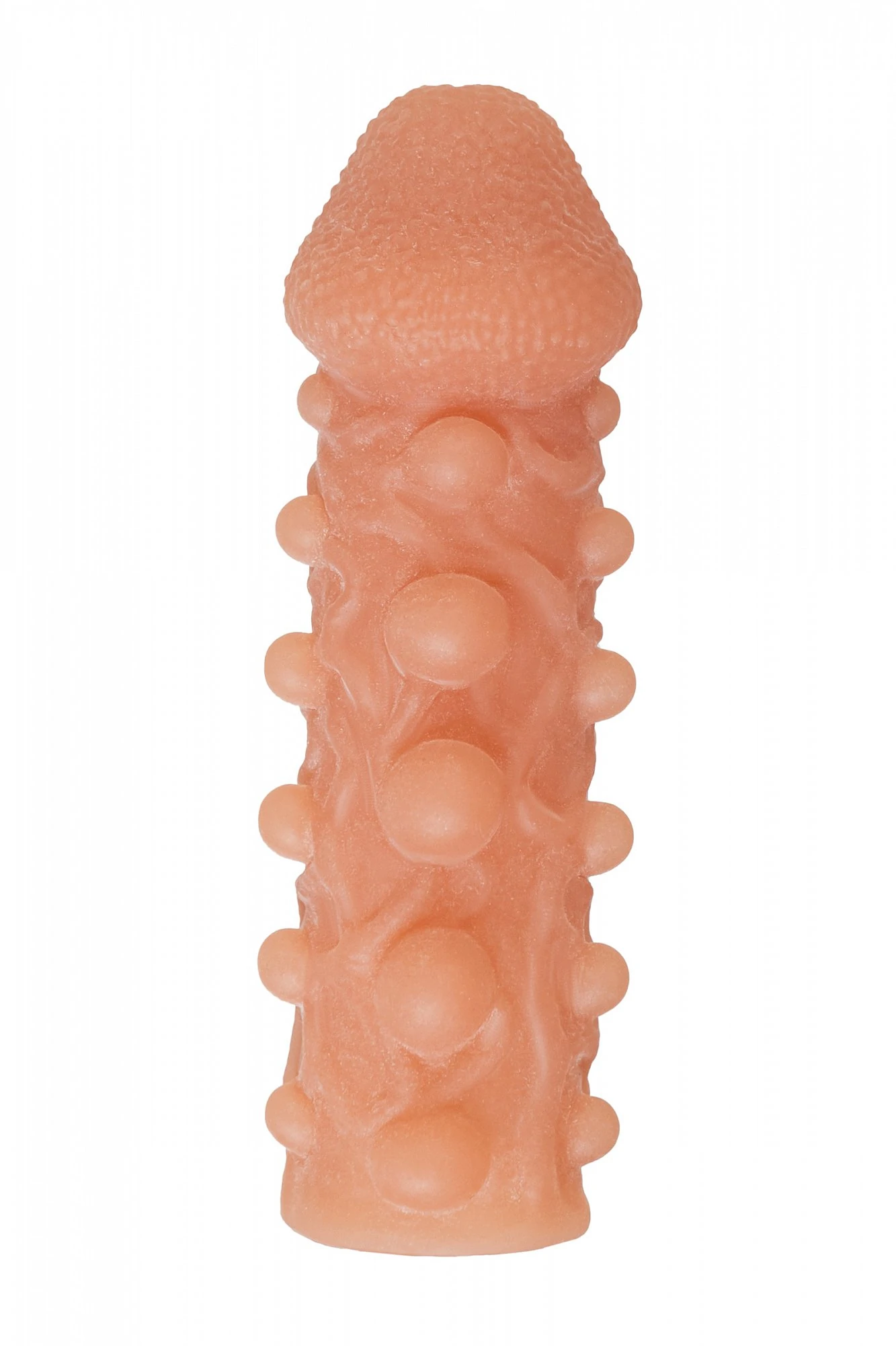 Увеличивающая насадка с фантазийным рельефом от KOKOS открывает новые возможности для взаимного удовольствия и воплощает фантазии о внушительном размере пениса. Увеличенный размер и объем полового члена добавляет мужчине уверенности в своих сексуальных возможностях. Дополнительная стимуляция партнерши для яркого и насыщенного оргазма. Увеличение продолжительности полового акта у мужчины - задержка эякуляции, и наращивание темпа приближения оргазма у женщины. Реалистичная насадка на пенис - необходимый элемент для вашей сексуальной игры, если вы хотите максимально удовлетворить свою партнершу и сделать ваш секс незабываемым. Благодаря значительному размеру мощной головки, зона G и вход во влагалище получают усиленную стимуляцию. Особенный рельеф в виде мягких шариков разных размеров и многочисленных вен по всему стволу насадки деликатно ласкает чувствительные зоны. Размер: длина 15,6 см, диаметр 4,2 см.