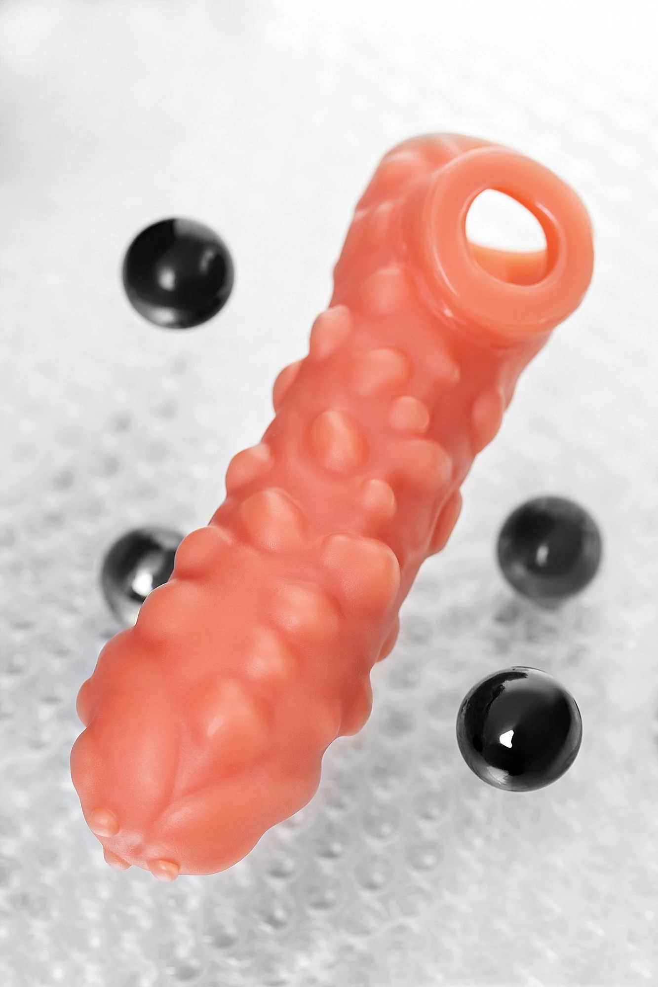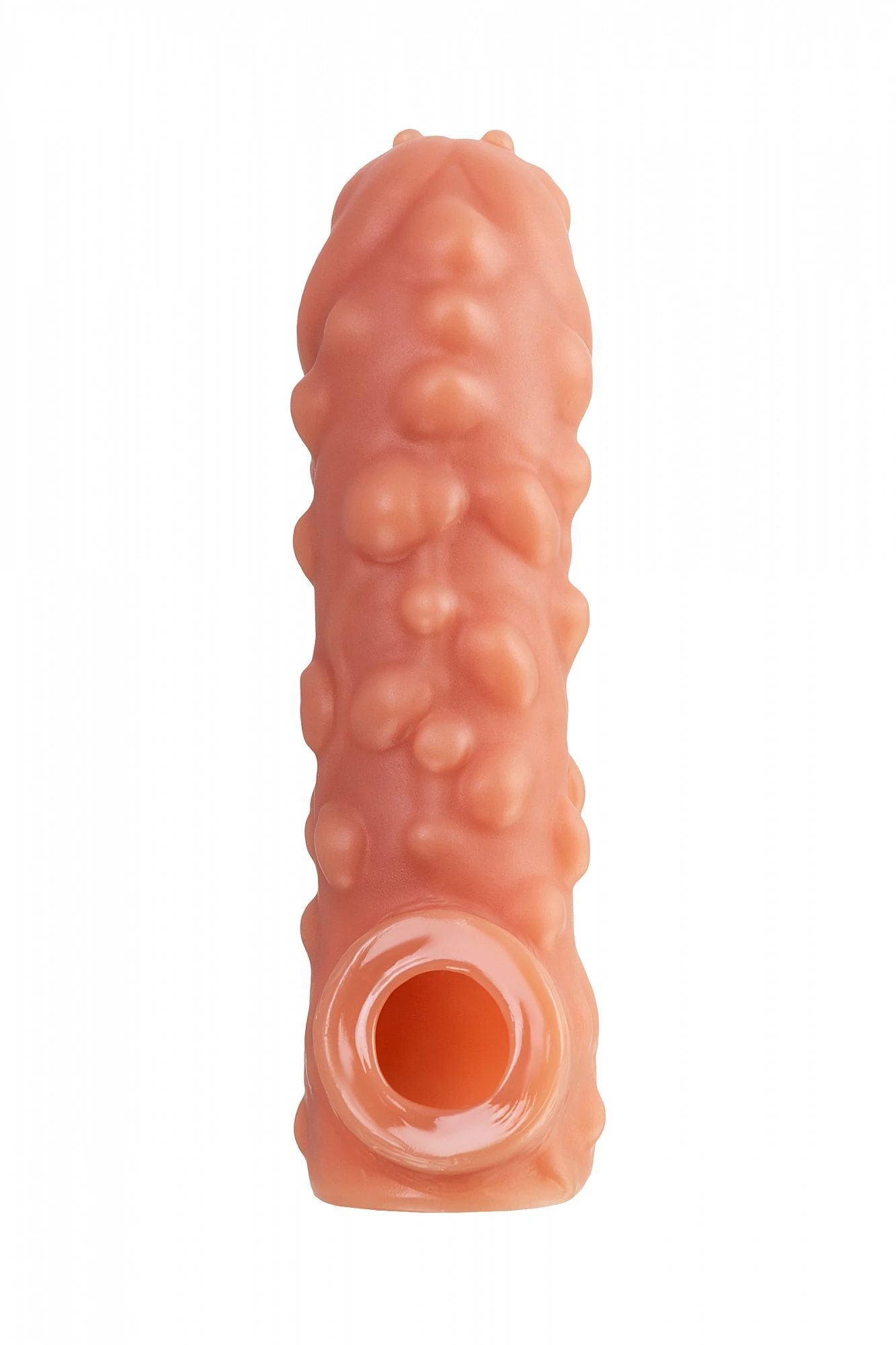 Увеличивающая насадка KOKOS c впечатляющей дополнительной стимуляцией решает сразу 3 задачи: дарит удовольствие обоим партнерам, позволяет экспериментировать с секс-игрушками и выводит интимную жизнь на более высокий уровень. Размер: длина 15,6 см, диаметр от 4,2 до 4,7 см. Цвет телесный. Для более комфортного использования рекомендуем приобрести смазку на водной основе и очищающий спрей Clear Toy 100 мл для обработки изделия.