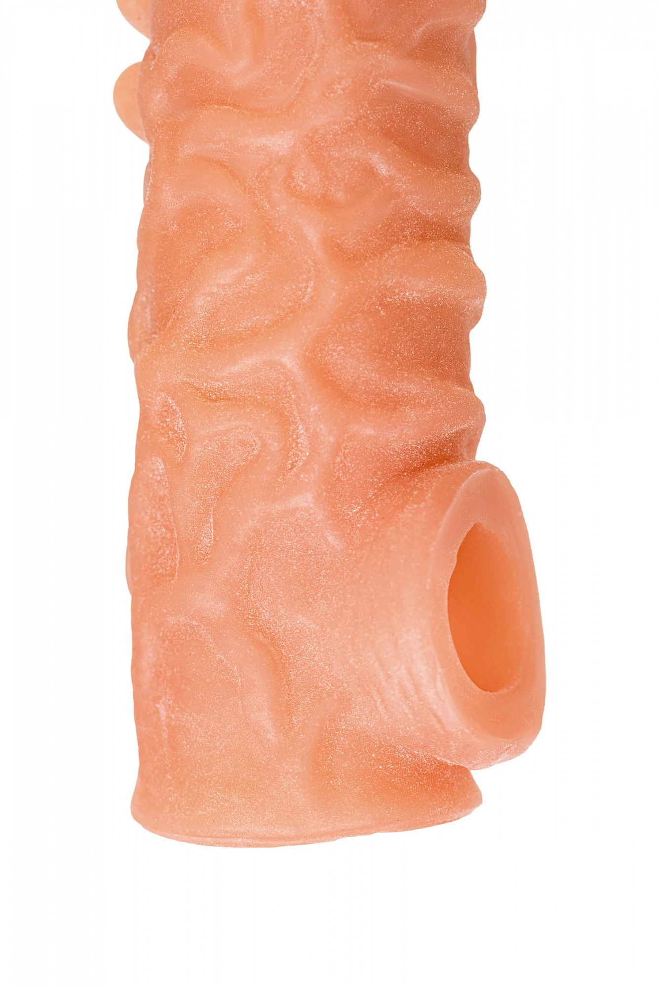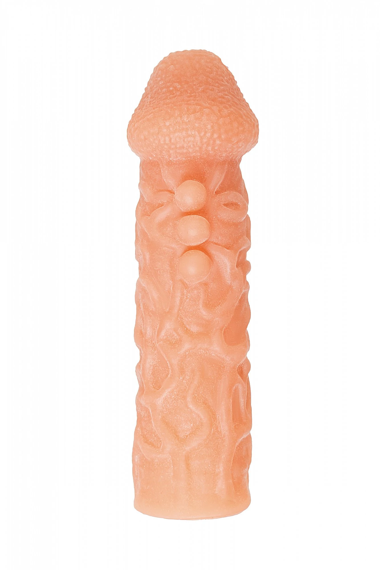 Увеличивающая насадка с изгибом и фантазийным рельефом в виде вен и пупырышек от Kokos открывает новые возможности для взаимного удовольствия. Увеличение продолжительности полового акта у мужчины - задержка эякуляции, и наращивание темпа приближения оргазма у женщины. Насадка придает дополнительный объем и длину половому члену. Мощная головка имеет рельеф из мелких пузырьков и крупный выступ. Изогнутая форма и три выступающих бугорка очень хорошо стимулируют зону G и вход во влагалище. Контрастный переход от головки к стволу и 3 выпуклости на передней части насадки, благодаря изогнутой форме, увеличивают силу стимуляции. Размер: 17,6 см, диаметр 4,6 см. Цвет телесный. Для более комфортного использования рекомендуем приобрести смазку на водной основе и очищающий спрей Clear Toy 100 мл для обработки изделия.