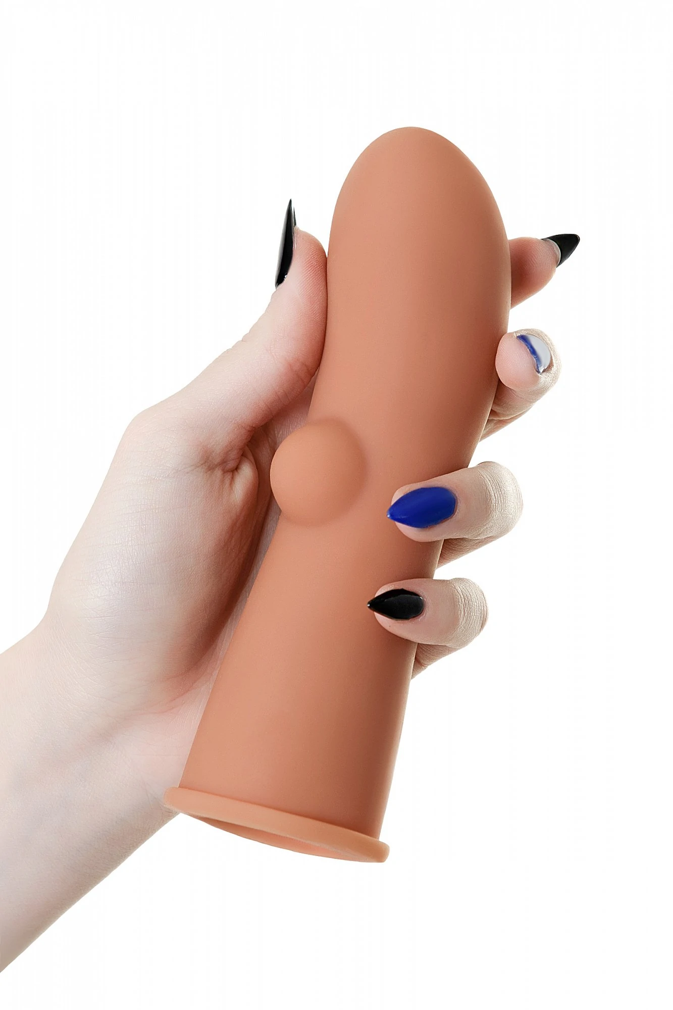 Увеличивающая насадка с впечатляющей дополнительной стимуляцией решает сразу 3 задачи: дарит удовольствие обоим партнерам, позволяет экспериментировать с секс-игрушками и выводит интимную жизнь на более высокий уровень.Желанное разнообразие! Насадка придает члену внушительный объем и новую форму, поэтому как нельзя лучше подходит для сценариев «Секс с незнакомцем». При этом дополнительный рельеф с имитацией пирсинга привносит незабываемый эффект новизны в ощущения партнерши. В то время как женщина испытывает потрясающее чувство наполненности и получает интенсивную стимуляцию стенок влагалища, мужчина наслаждается более продолжительным половым актом и возбуждающими оргазмами партнерши. Киберкожа прекрасно передает всю мощность вибраций, поэтому насадку можно использовать не только с партнером, но и с любимым вибратором. Kokos превосходно тянется и легко надевается на член, обеспечивая при этом плотное и комфортное прилегание. Размер: длина 14.7 см, диаметр 4,3 см.