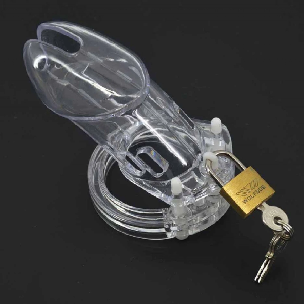 Пояс верности дает держателю ключа оптимальную власть над сексуальным наслаждением! Размер: длина 7 см, диаметр внутри стволовой трубы 3,3 см, внутр. диаметр фиксирующих колец: 48, 45, 42, 38 и 35 мм. Цвет прозрачный.