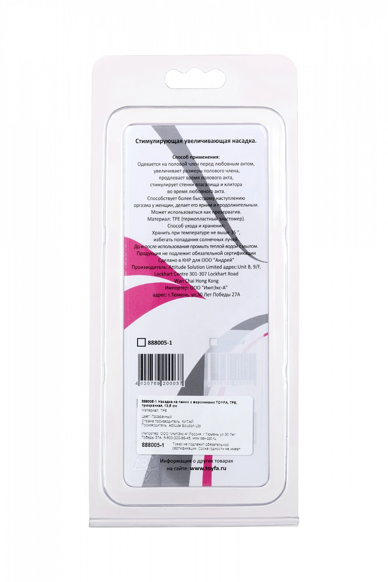 Насадка розовая с пупырышками. Материал: ПТЕ. Диаметр 3,5 см. Длина 13,5 см. Цвет: прозрачный. Для более комфортного использования рекомендуем приобрести смазку на водной основе и очищающий спрей Clear Toy 100 мл для обработки изделия.