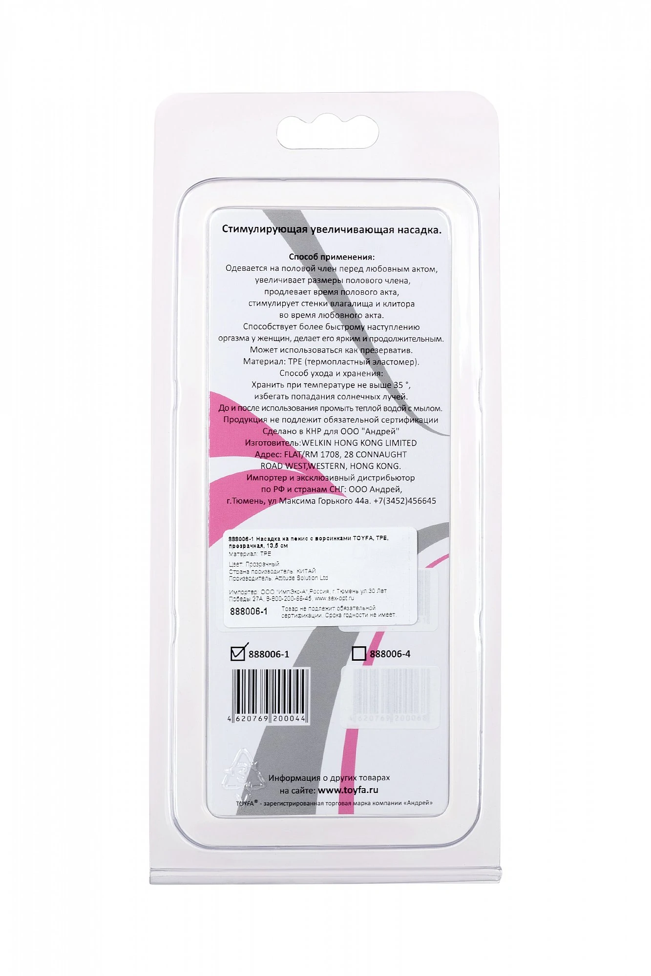 Насадка с шипиками, для дополнительной стимуляции. Растягивается и принимает нужную форму. Размер: длина 8 см, диаметр 2,5 см. Цвет: прозрачный. Для более комфортного использования рекомендуем приобрести смазку на водной основе и очищающий спрей Clear Toy 100 мл для обработки изделия.