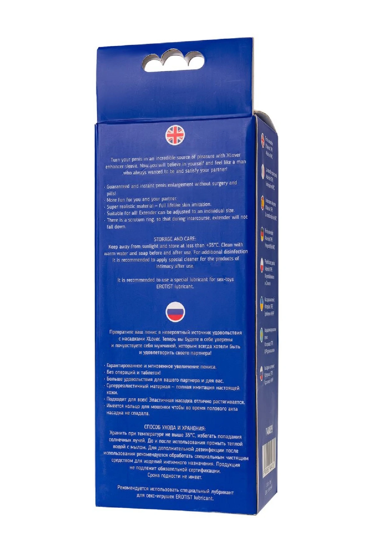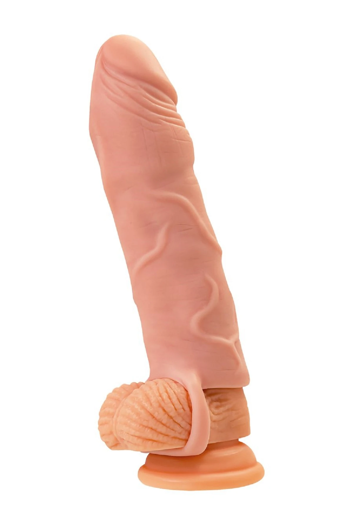 Насадка из супермягкого реалистичного материала легко растягивается и надевается на член, чтобы сделать его более впечатляющим. Она не только гарантирует мгновенное увеличение пениса, но и позволяет продлить половой акт, делая мужской орган менее чувствительным. Материал Softskin имитирует настоящую кожу и быстро становится теплым и живым. Кольцо на мошонку отлично удерживает насадку, и вы можете наслаждаться друг другом, не заботясь о ее фиксации. Размер: общая длина 19 см, длина уплотнения 3 см, длина от кольца 18 см, толщина стенки 0,5 см. Для более комфортного использования рекомендуем приобрести смазку на водной основе и очищающий спрей Clear Toy 100 мл для обработки изделия.