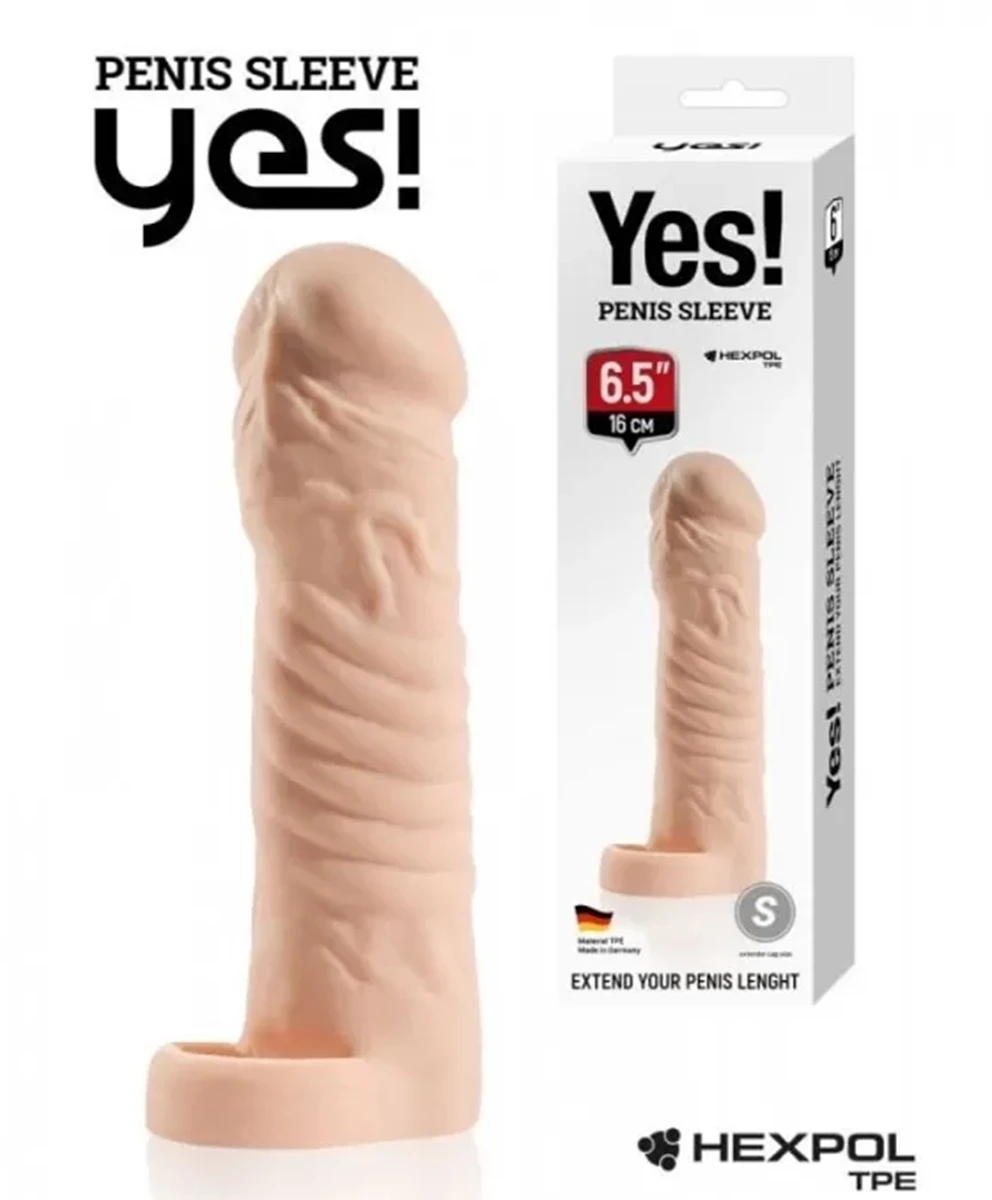 Насадка-удлинитель Yes! penis sleeve, предназначена для увеличения длины полового органа, за счёт внутренней вставки. Насадка изготовлена из современного и безопасного материала Lifoflex, разработанный и произведен в Германии. Материал Lifоflex идеально подходит для интимного использования, он мягкий, реалистичный, приятный на ощупь, что даёт возможность оставить незаметным корректировку пениса для Вашей партнёрши. Для более комфортного использования, насадка имеет кольцо на мошонку. Размер: длина 16 см, диаметр 2,5 см. Цвет телесный. Для более комфортного использования рекомендуем приобрести смазку на водной основе и очищающий спрей Clear Toy 100 мл для обработки изделия, после просушки опудрить пудрой