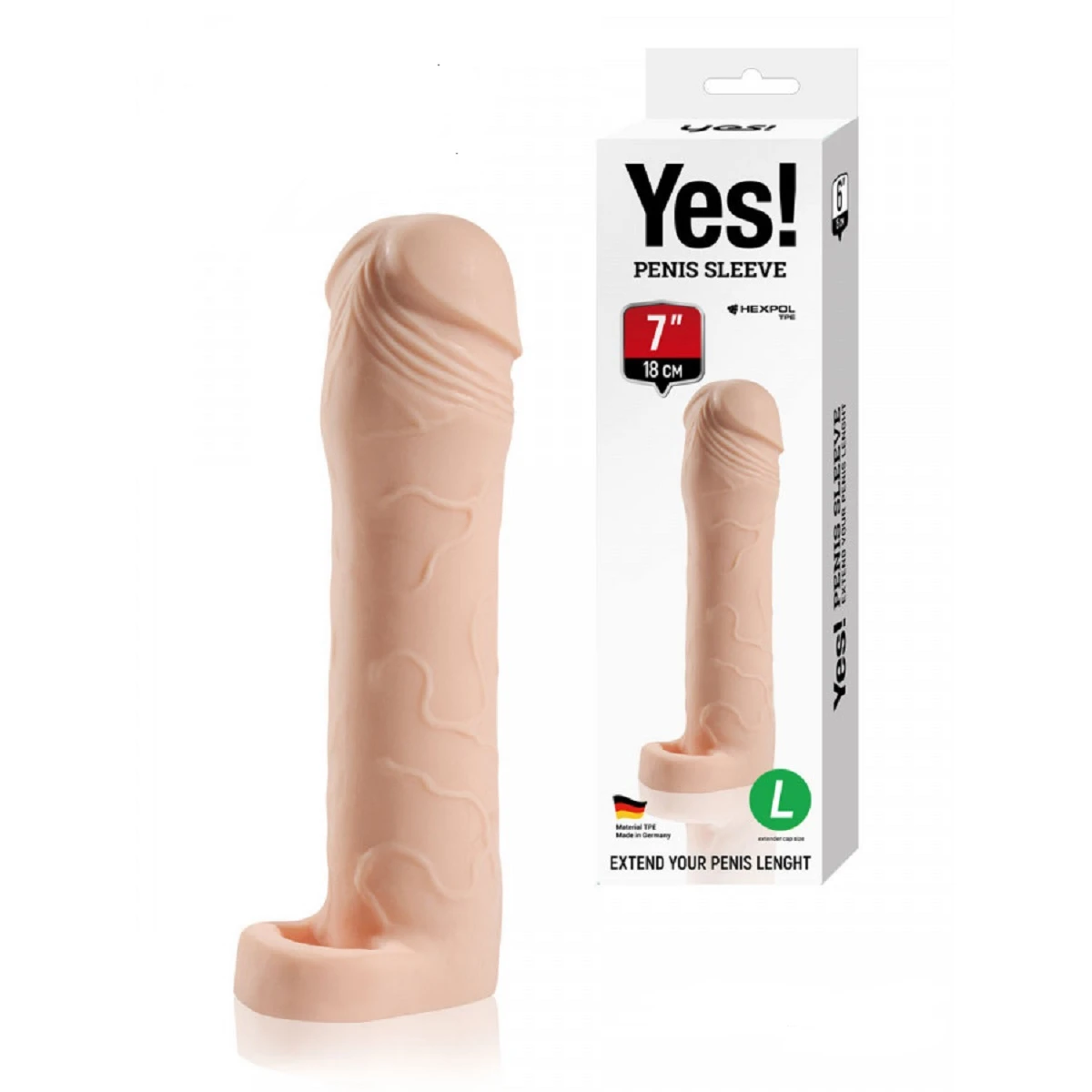 Насадка-удлинитель Yes! penis sleeve, предназначена для увеличения длины полового органа, за счёт внутренней вставки. Насадка изготовлена из современного и безопасного материала Lifoflex, разработанный и произведен в Германии. Материал Lifоflex идеально подходит для интимного использования, он мягкий, реалистичный, приятный на ощупь, что даёт возможность оставить незаметным корректировку пениса для Вашей партнёрши. Для более комфортного использования, насадка имеет кольцо на мошонку. Размер: длина 18 см, диаметр 2,5 см. Цвет телесный. Для более комфортного использования рекомендуем приобрести смазку на водной основе и очищающий спрей Clear Toy 100 мл для обработки изделия, после просушки опудрить пудрой
