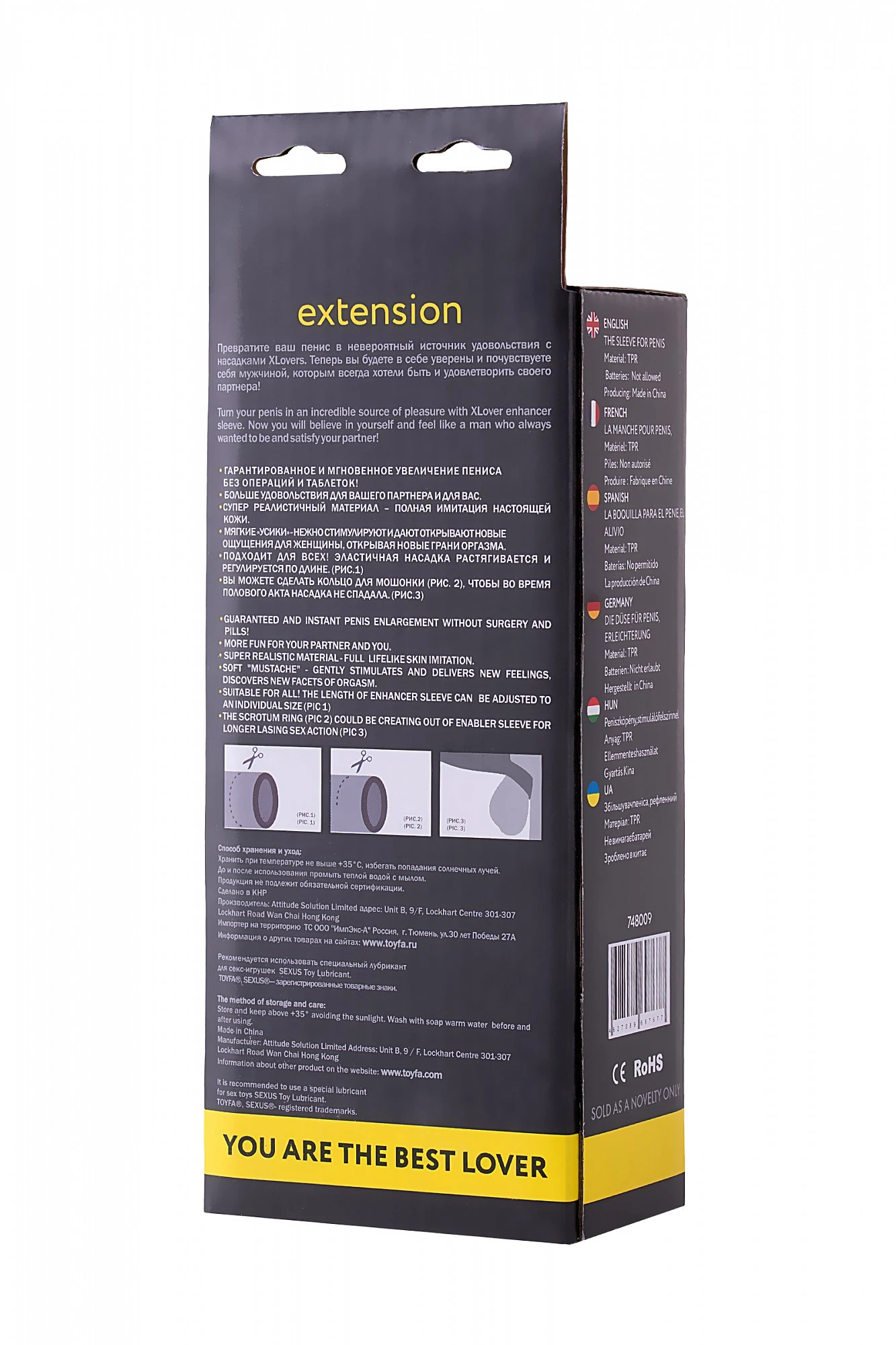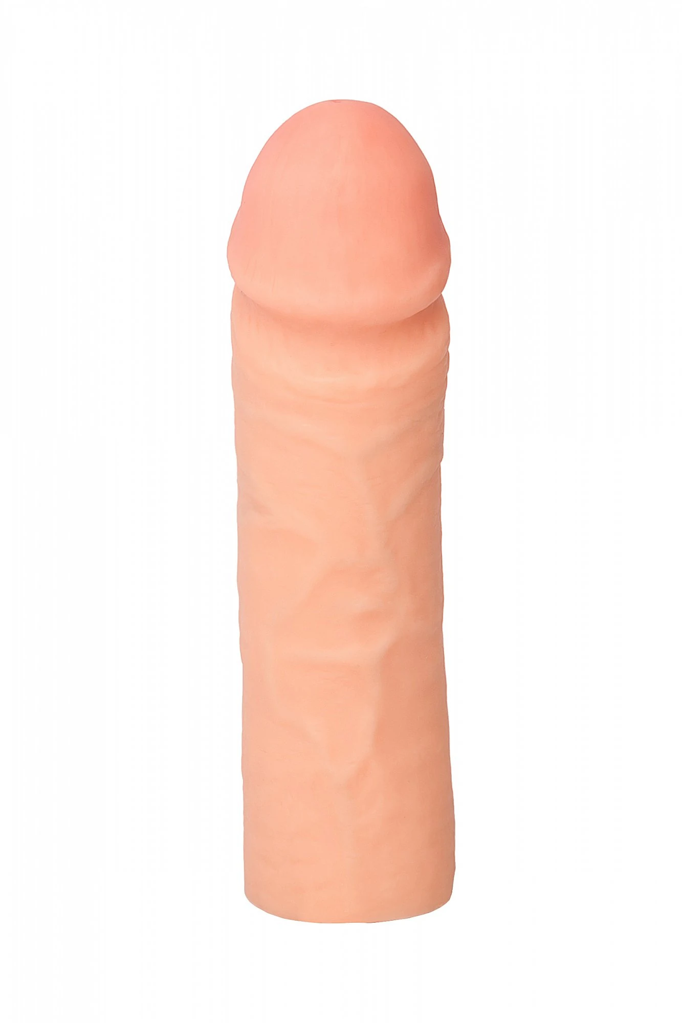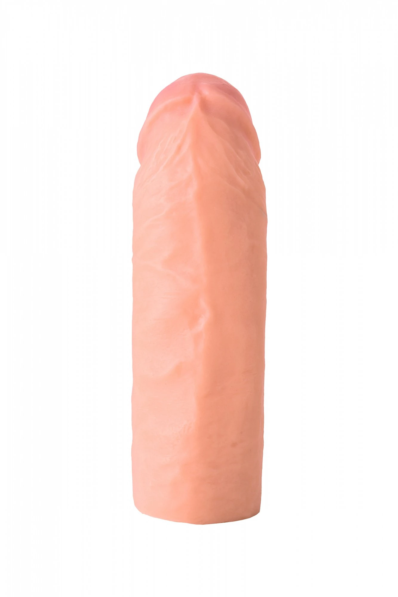 Насадка с четко очерченной головкой выполнена из реалистичного материала Softskin. Благодаря своей эластичности легко одевается на член, увеличивая его в длине и в диаметре, продлевая удовольствие. Может использоваться в качестве насадки на вибратор. Размер: длина: 18 см, диаметр: 4,5 см, толщина стенки 0,6 см (максимальное утолщение в ширину 1,2см) В комплекте прилагается лубрикант Sexus Toy 20 мл.