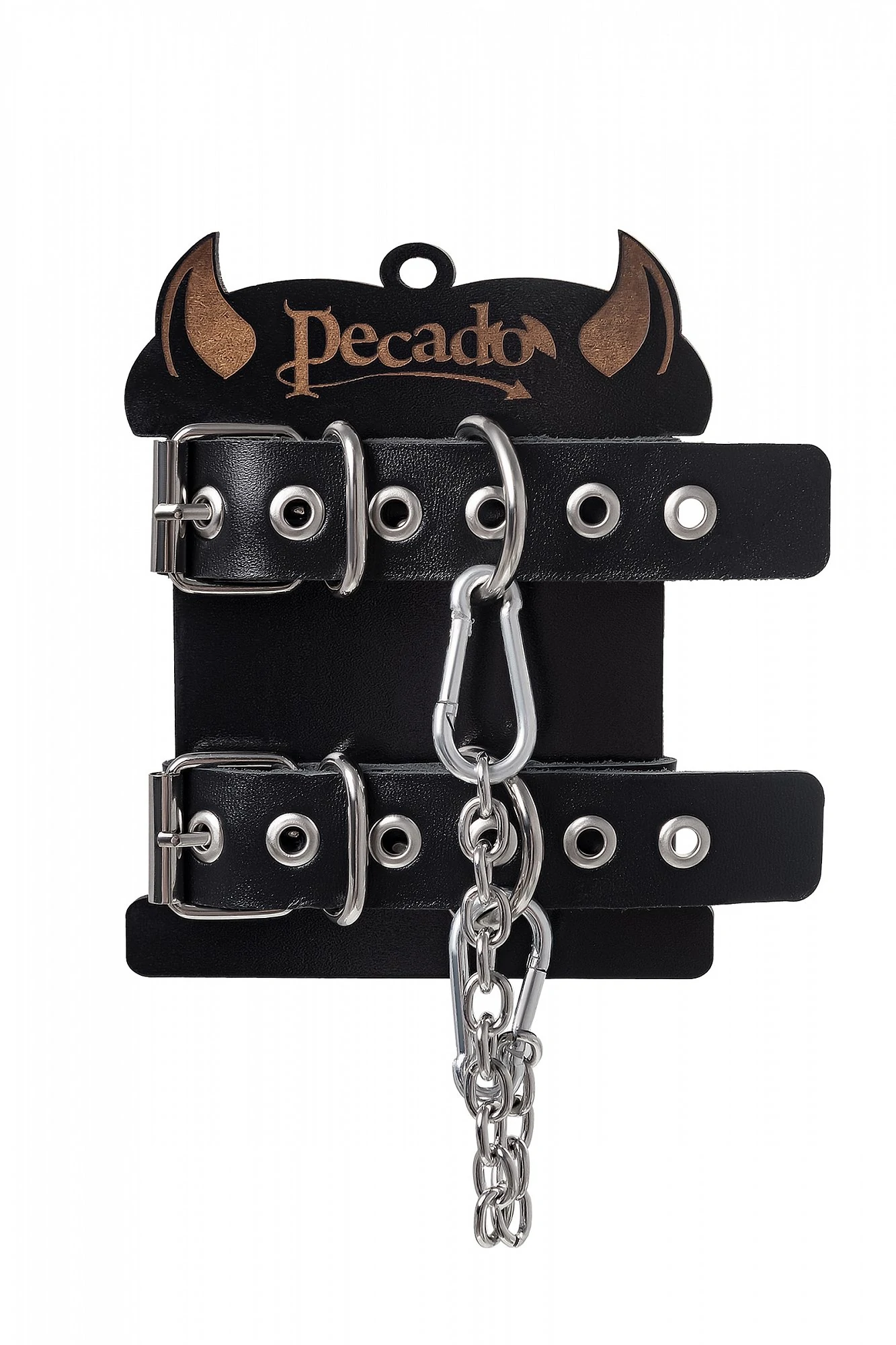 Оковы из одного ремешка от Pecado - отличный помощник, чтобы обездвижить партнера. Материал атрибута – 100% натуральная и прочная кожа. Благодаря полностью ручной работе оковы дарят особую атмосферу ролевым играм. Оковы надежно захватывают щиколотки ног. Не оставляют следов на теле. Пять крепких люверсов на каждом ремешке и замок помогают легко расстёгивать и застегивать девайс. Манжеты оков соединяются между собой металлической цепью, которая легко снимается. С помощью большого кольца и карабинов, возможно соединять к чокеру и другие девайсы. Не ограничивайте себя и свои искушенные фантазии! Материал: натуральная кожа. Ручная работа. Износостойкий, тактильно приятный материал. Надежная высококачественная фурнитура. Универсальный размер. Длина ремешка 31,5 см, ширина ремешка 2,5 см, длина сцепки 20 см.