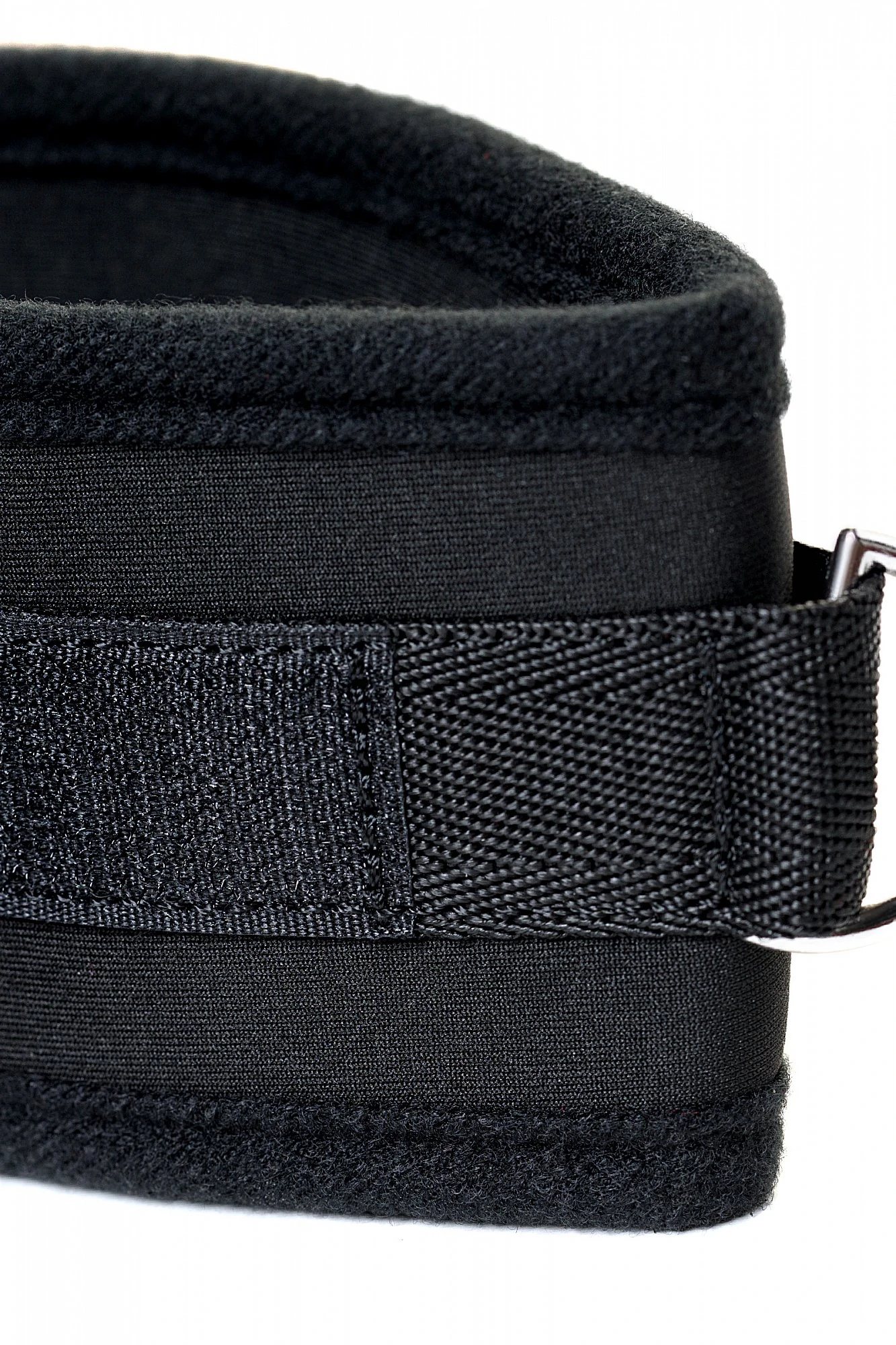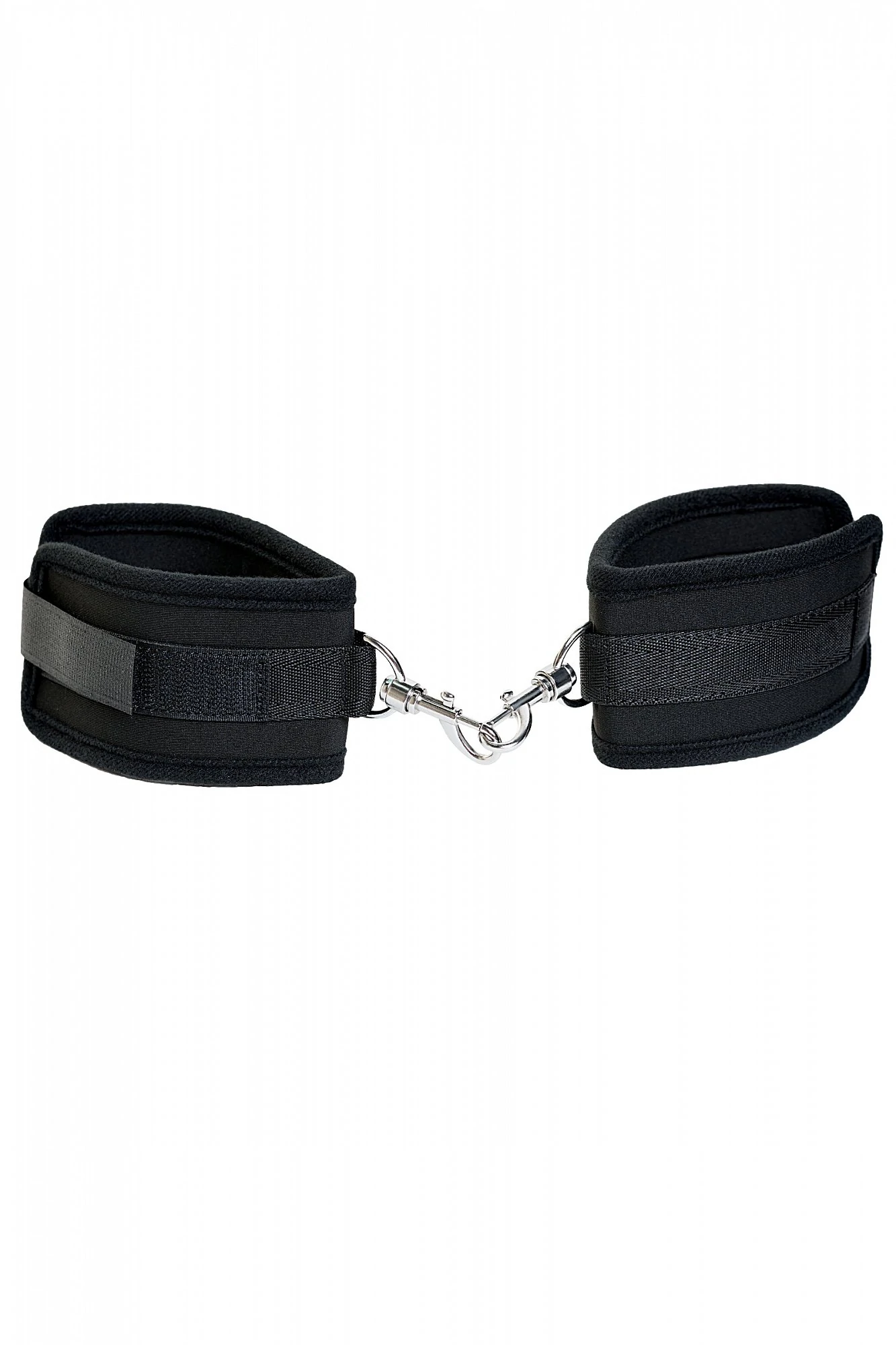 Оковы на ноги черные неопреновые. Мягкие оковы с застежкой велкро, позволяющей максимально регулировать объем. Между собой манжеты соединены карабинами.