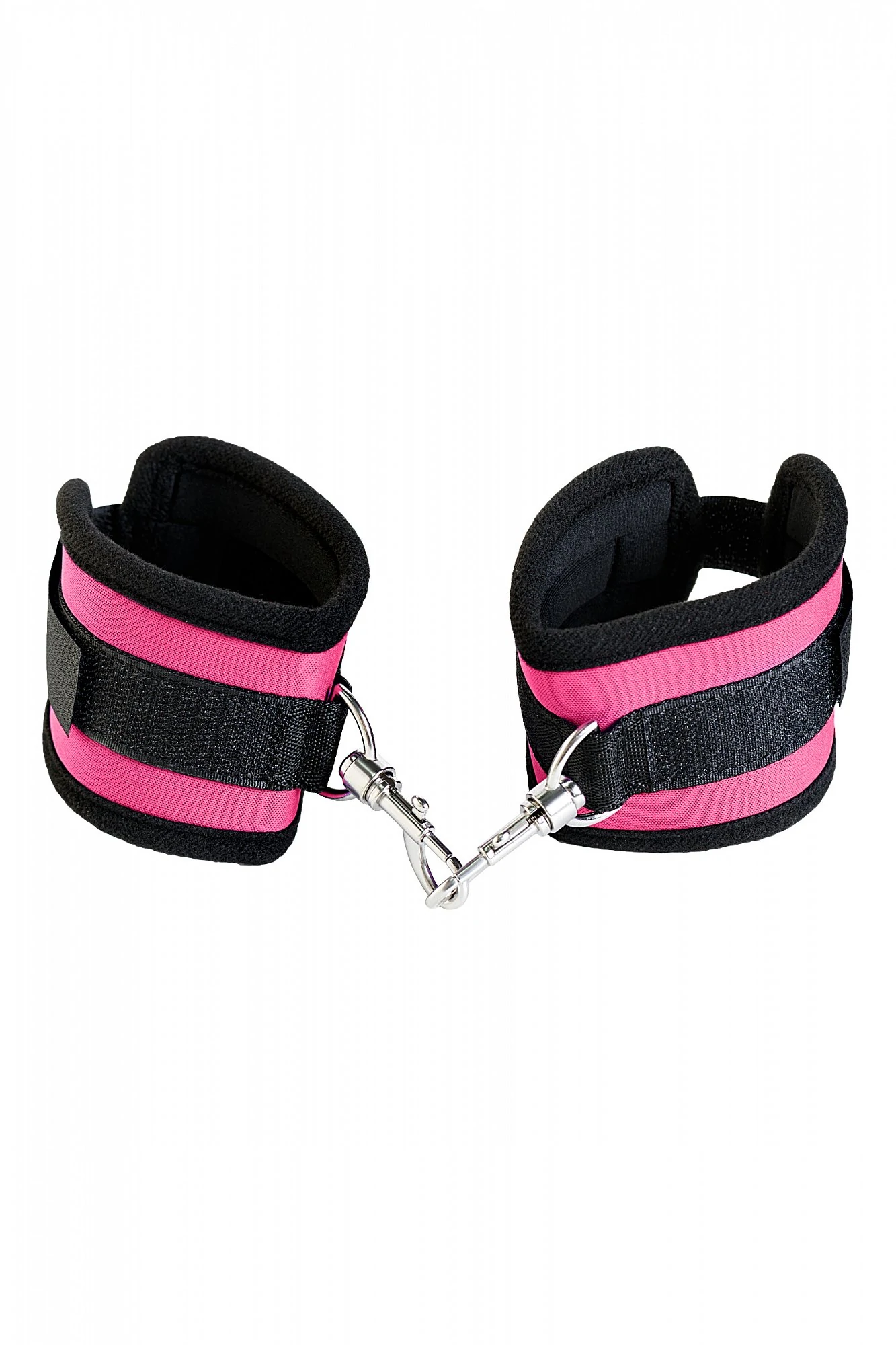 Оковы на ноги из неопрена розовые. Мягкие оковы с застежкой велкро, позволяющей максимально регулировать объем. Между собой манжеты соединены карабинами.