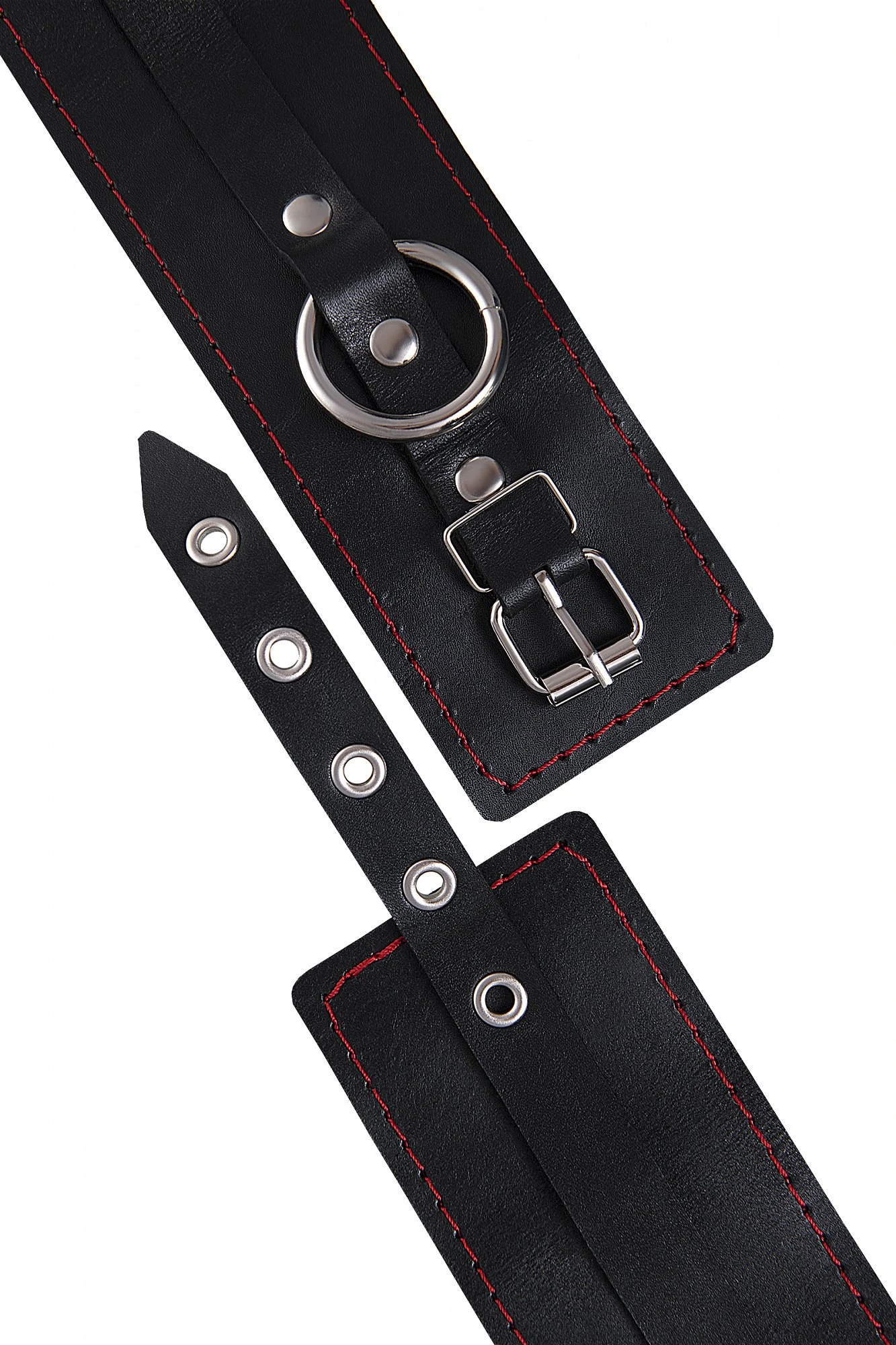 Готовы играть по-взрослому? Не бойтесь своих желаний! Основатели бренда уверены: лучший способ избавиться от искушения - поддаться ему! Эти однослойные кожаные оковы с контрастной строчкой красного цвета могут стать стильным аксессуаром, а могут послужить вашим целям по своему прямому назначению. Частичное обездвиживание и невозможность двигать руками или ногами дают вам полную власть над партнером – взрослые игры для взрослых. Наличие двух колец и карабинов, соединенных между собой кожаным ремешком, позволяет использовать изделие как раздельно – аксессуар-манжеты, так и как оковы для фиксации. К широким металлическим кольцам также можно присоединить и другие аксессуары при помощи карабинов. Благодаря универсальному размеру оковы могут использоваться и мужчинами, и женщинами. Размер легко регулируется с помощью металлических пряжек, органично вписывающихся в общий стиль. Ширина манжет 6,5 см, длина манжет 25 см.