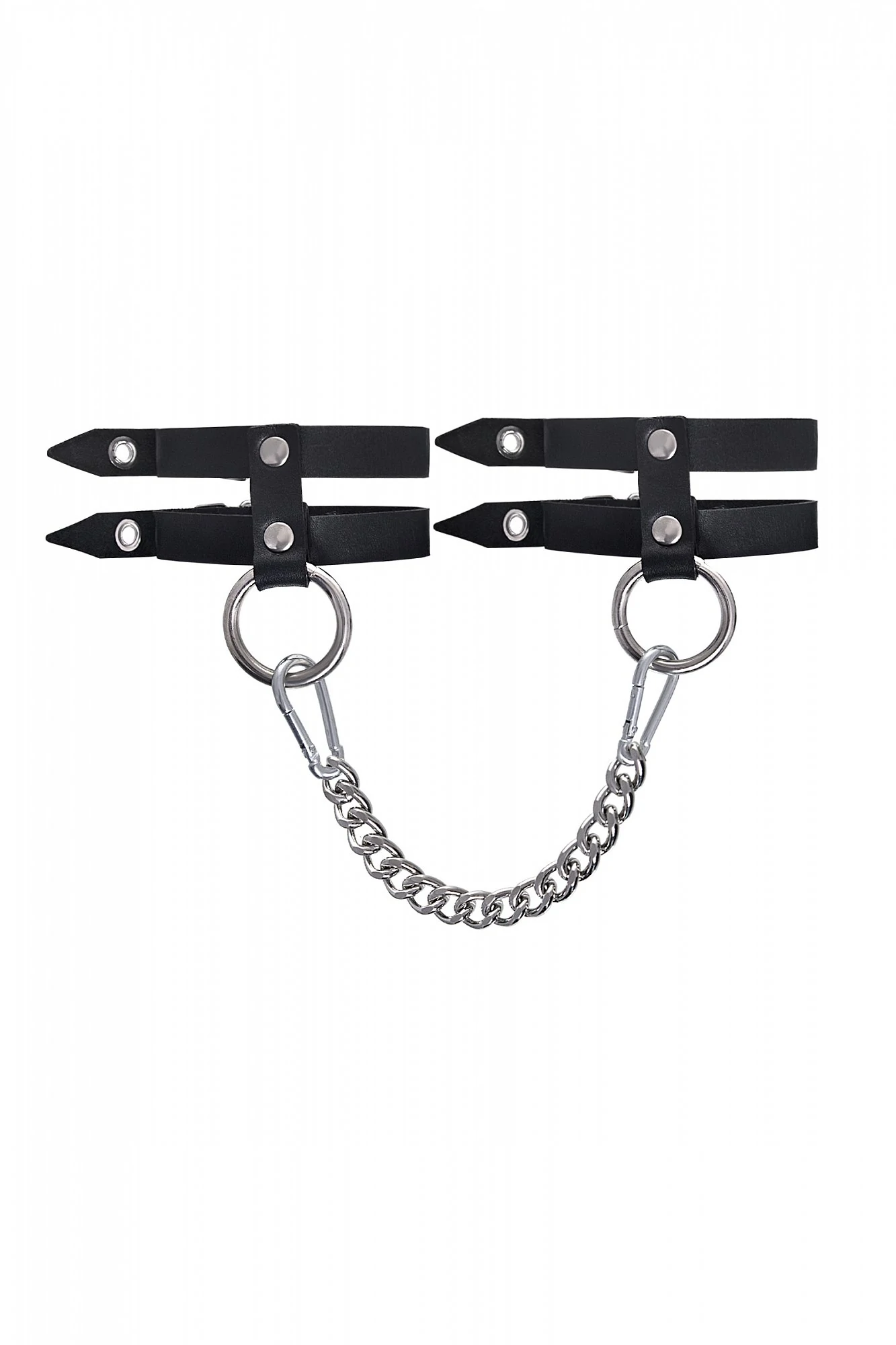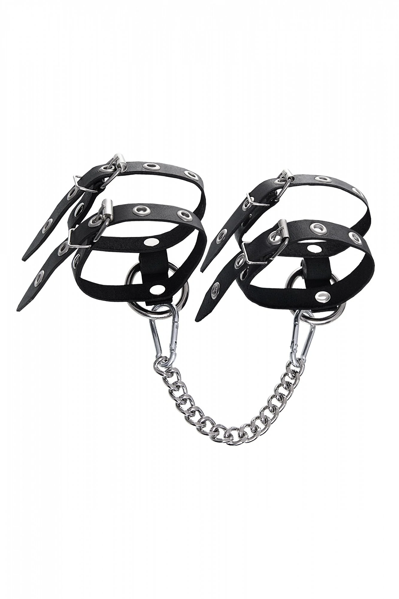 Готовы играть по-взрослому? Не бойтесь своих желаний! Основатели бренда уверены: лучший способ избавиться от искушения - поддаться ему! Добавьте пикантную деталь в ролевую игру и воплотите самую смелую сексуальную фантазию в реальность! Эти однослойные кожаные оковы из двух ремешков могут стать стильным аксессуаром, а могут послужить вашим целям по своему прямому назначению. Частичное обездвиживание и невозможность двигать руками или ногами дают вам полную власть над партнером – взрослые игры для взрослых. Наличие двух колец и карабинов, соединенных между собой металлической цепочкой, позволяет использовать изделие как раздельно – аксессуар-манжеты, так и как оковы для фиксации. К широким металлическим кольцам также можно присоединить и другие аксессуары при помощи карабинов. Благодаря универсальному размеру оковы могут использоваться и мужчинами, и женщинами. Размер легко регулируется с помощью металлических пряжек, органично вписывающихся в общий стиль. Ширина ремешков 1,6 см, длина манжет 30 см.