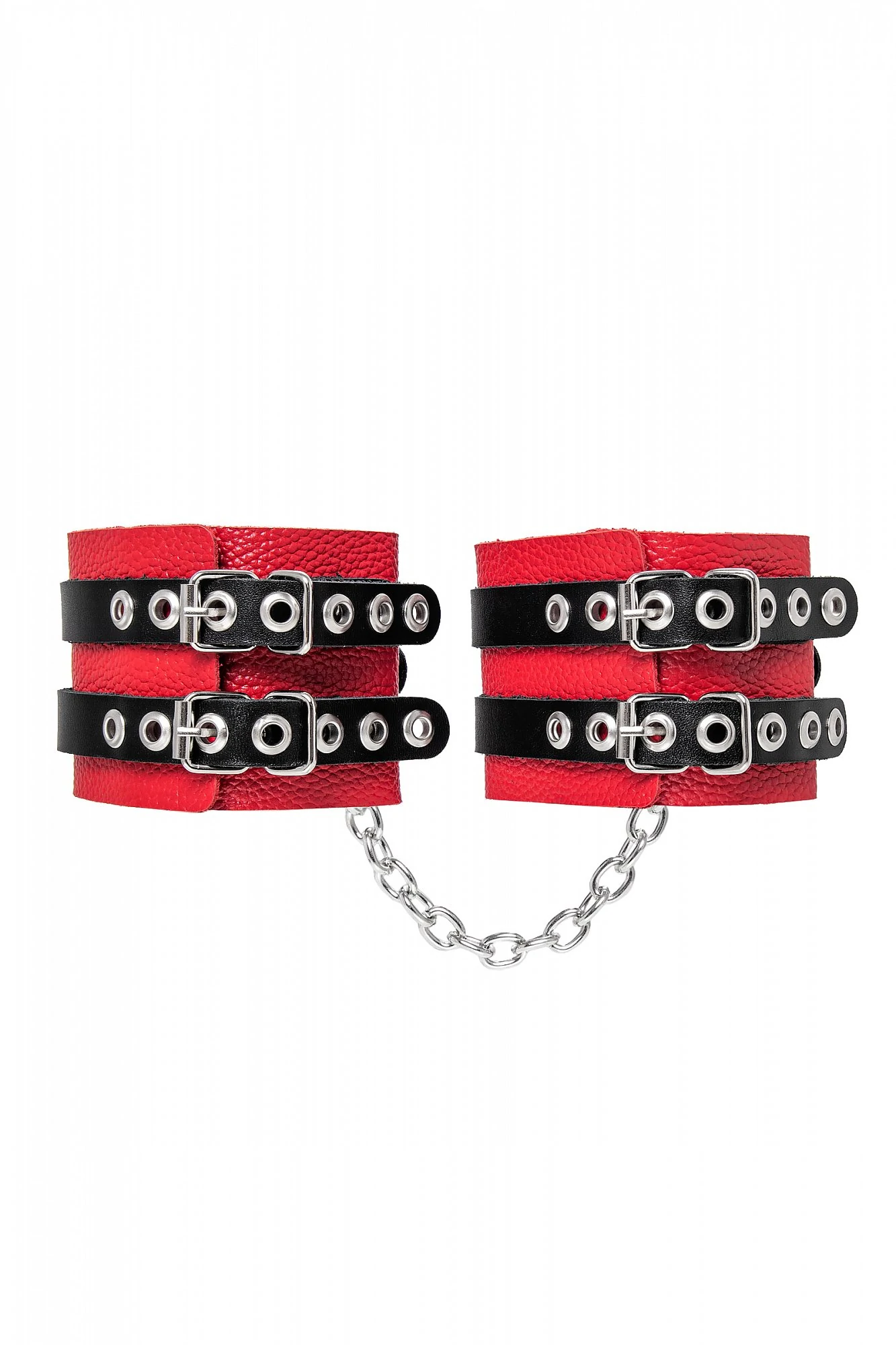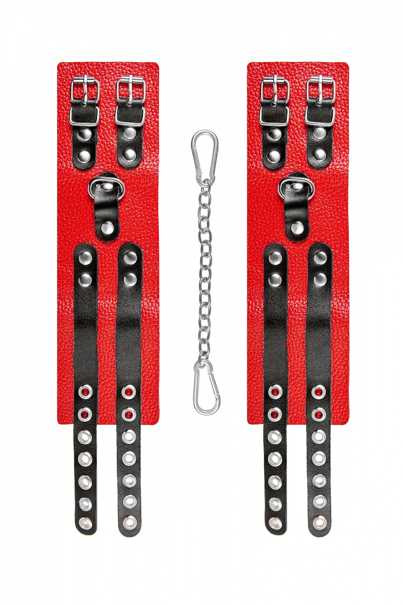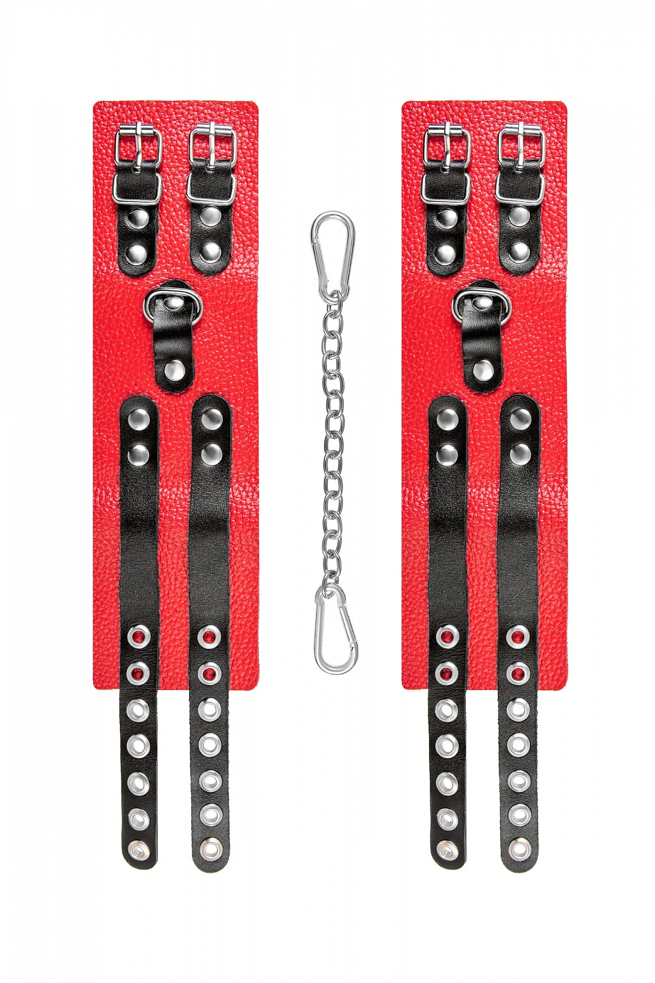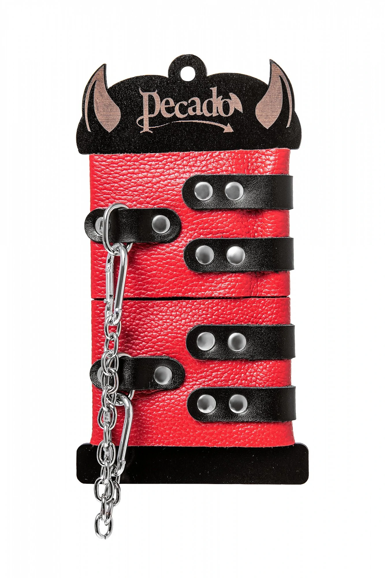 Мягкие оковы с двумя жёсткими ремешками от Pecado помогут обездвижить партнера во время сексуальных прелюдий или жестких БДСМ-играх. Оковы изготовлены полностью из красной, натуральной кожи. Ремешки выполнены из чёрной жёсткой кожи, украшены люверсами. Выделка материала произведена вручную. Ремешки и широкая манжета хорошо держат форму: не тянутся и не мнутся. Качественная металлическая фурнитура добавляет лоска изделию, а аромат натуральной кожи повышает градус возбуждения. Благодаря широкому запасу регулировок, можно подобрать необходимый обхват. Аксессуар удобно застегивать и легко расстегивать. При правильном использовании не оставляет следов на теле и не доставляет дискомфорта. Манжеты оков соединяется между собой помощью двух карабинов и съемной стальной цепочки. Подходит и для женских, и для мужских ног. 100% натуральная кожа. Ручная работа. Износостойкий, тактильно приятный материал. Надежная высококачественная фурнитура. Универсальный размер. Ширина манжет 7 см, длина 25 см, длина сцепки 20 см.