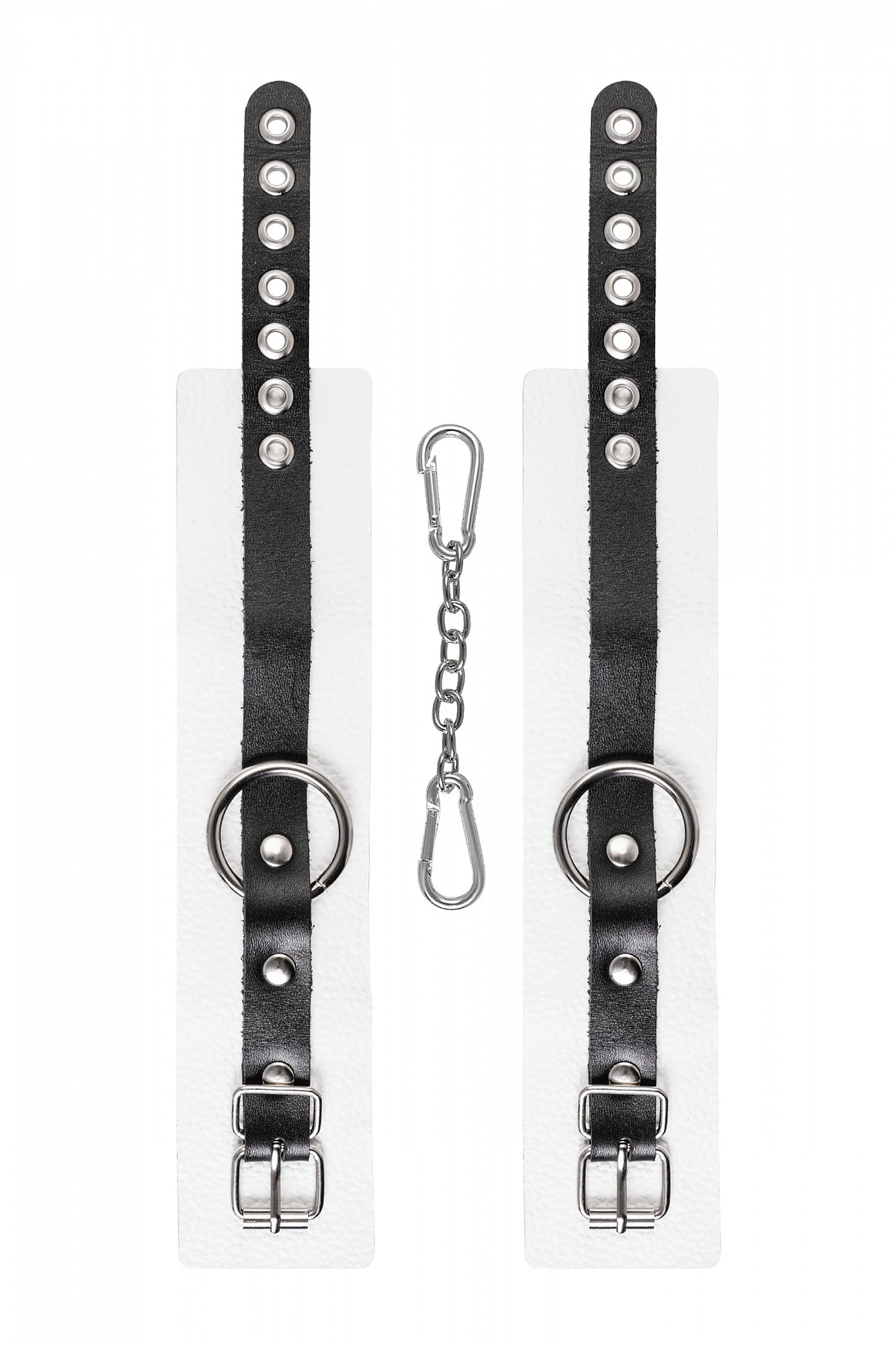 Мягкие оковы с жёсткими ремешками от Pecado помогут обездвижить партнера во время сексуальных прелюдий или жестких БДСМ-играх. Наручники изготовлены полностью из белой, натуральной кожи. Ремешки выполнены из чёрной жёсткой кожи, украшены люверсами. Выделка материала произведена вручную. Ремешки и широкая манжета хорошо держат форму: не тянутся и не мнутся. Качественная металлическая фурнитура добавляет лоска изделию, а аромат натуральной кожи повышает градус возбуждения. Благодаря широкому запасу регулировок, можно подобрать необходимый обхват. Аксессуар удобно застегивать и легко расстегивать. При правильном использовании не оставляет следов на теле и не доставляет дискомфорта. Манжеты оков соединяется между собой помощью двух карабинов и съемной стальной цепочки. Подходит и для женских, и для мужских ног. Ширина манжет - 5,5см Длина манжет - 25см Длина сцепки - 24см.