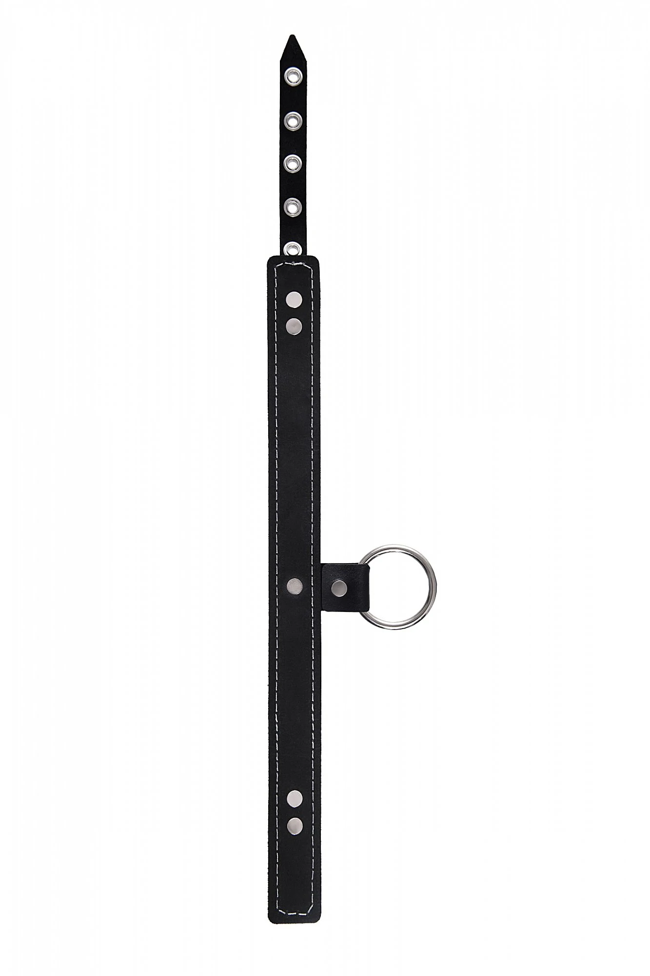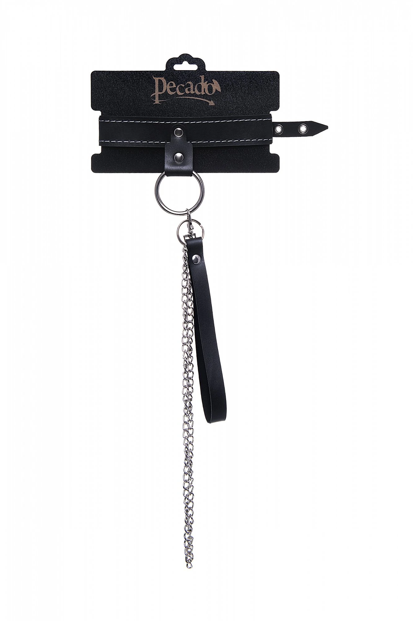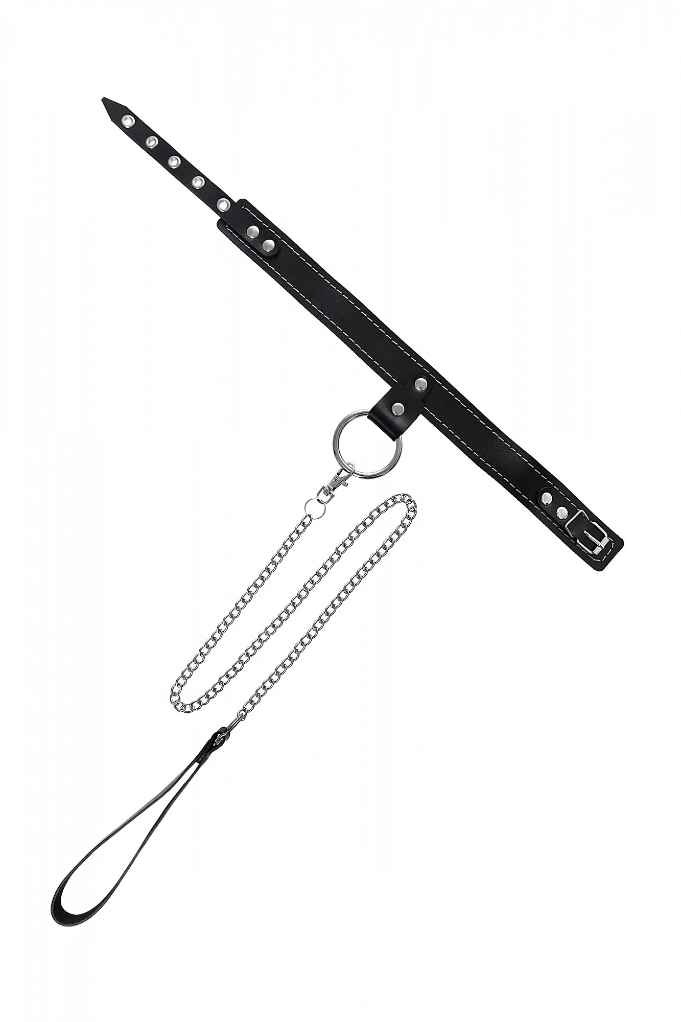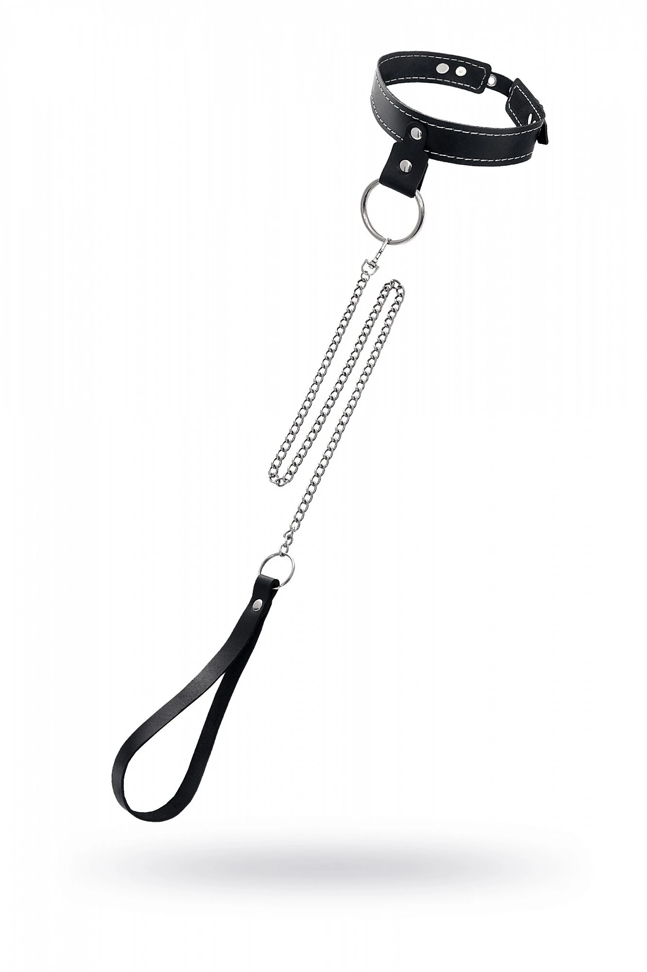 Узкий однослойный кожаный ошейник с металлическим поводком может стать отличным дополнением в БДСМ-образ. Ошейник может выполнять не только свою первичную функцию — без поводка аксессуар послужит своеобразным украшением и добавит пикантности в образ. Добавьте изюминку в ролевую игру и воплотите самую смелую сексуальную фантазию в реальность – взрослые игры для взрослых. Поводок в виде цепочки имеет ручку-петельку для удобства хозяина и крепится надежным стальным карабином к кольцу на ошейнике. Легко отстегивается и превращает ошейник в чокер, который легко вписать в любой образ. К металлическому кольцу также можно присоединить и другие аксессуары при помощи карабинов. Благодаря универсальному размеру ошейник может использоваться как женщинами, так и мужчинами – размер легко регулируется с помощью металлической пряжки, органично вписывающейся в общий стиль. Материал: натуральная кожа. Цвет черный. Размер: ширина ошейника 3 см, длина ошейника 38 см, длина поводка 80 см.