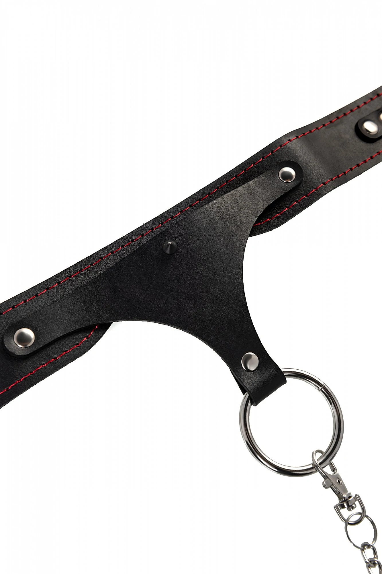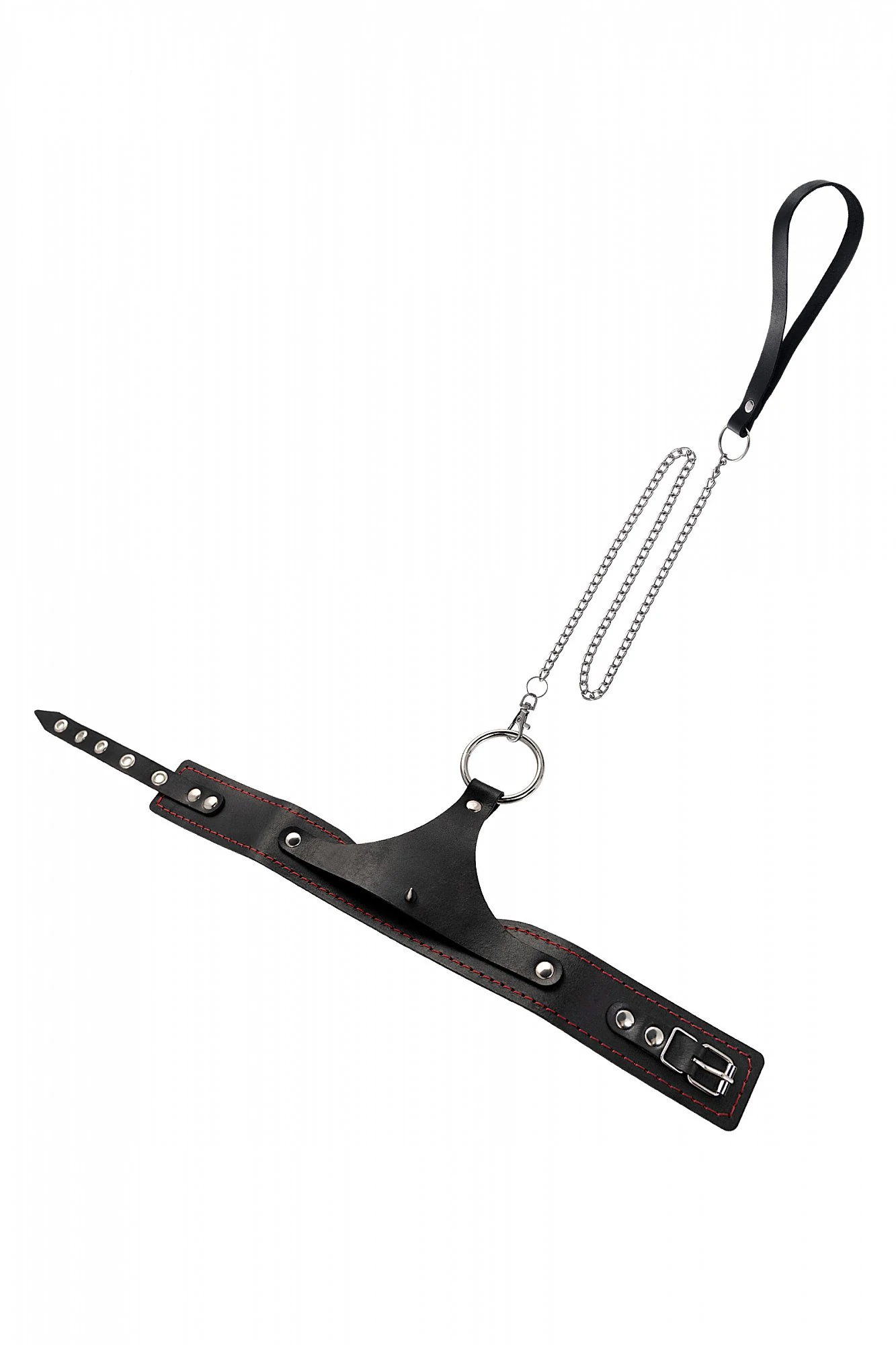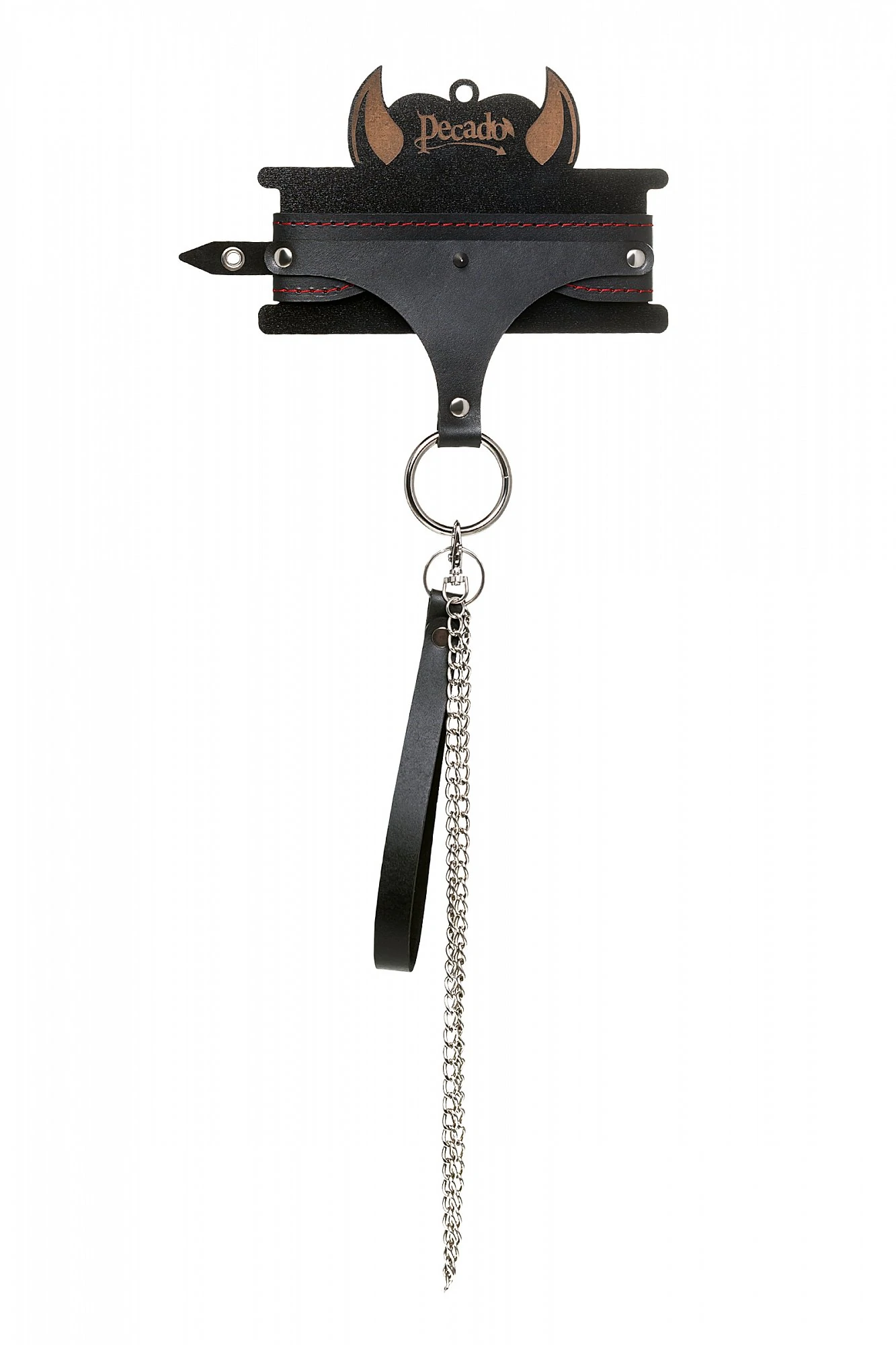 Кожаный ошейник с красной отстрочкой производства Pecado BDSM с металлическим поводком может стать отличным дополнением в БДСМ-образ вместе с наручниками и оковами того же дизайна. Ошейник может выполнять не только свою первичную функцию — без поводка аксессуар послужит своеобразным украшением и добавит пикантности в образ. Добавьте изюминку в ролевую игру и воплотите самую смелую сексуальную фантазию в реальность – взрослые игры для взрослых. Поводок в виде цепочки имеет ручку-петельку для удобства хозяина и крепится надежным стальным карабином к кольцу на ошейнике. Легко отстегивается и превращает ошейник в чокер, который легко вписать в любой образ. Благодаря универсальному размеру ошейник может использоваться как женщинами, так и мужчинами – размер легко регулируется с помощью металлической пряжки, органично вписывающейся в общий стиль. Материал: натуральная кожа. Цвет черный. Размер: ширина ошейника 4 см, длина ошейника 38 см, длина поводка 80 см.