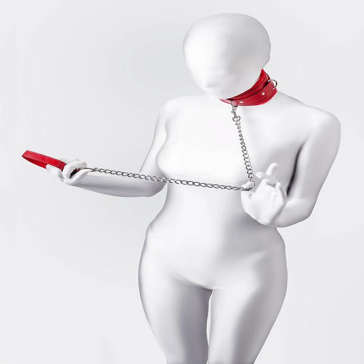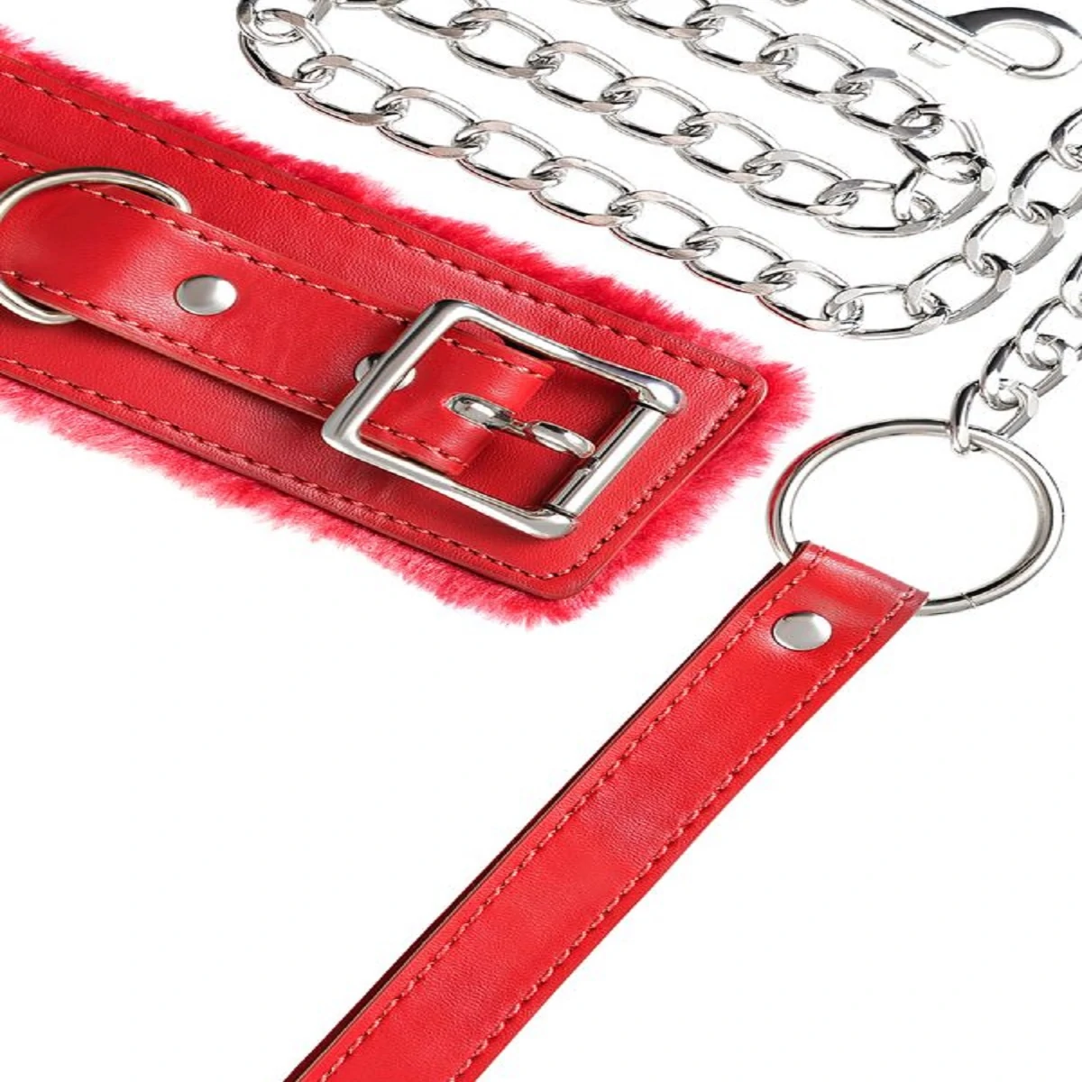 Ошейник яркого красного цвета с металлической отделкой говорит не об агрессии. Этот ошейник говорит о страсти, которую можно проявить, но только с разрешения Доминанта. Подкладка из искусственного меха немного смягчит давление на шею, поэтому выбор этого ошейника можно считать проявлением любви и заботы Доминанта к своему рабу. Ведь в мире БДСМ ошейник это не только своеобразный ограничитель свободы, но и символ принадлежности своему Хозяину. Пристегивающийся по центру поводок заставляет следовать за Хозяином, куда бы тот ни пошел. Размер регулируется с помощью металлической пряжки, которая служит одновременно декоративным элементом, и добавляет образу немного хардкора. Материал: кожа, искусственный мех. Цвет: красный. Размер: длина ошейника: 43,5 см, ширина ошейника 5,5 см, длина поводка 80 см.