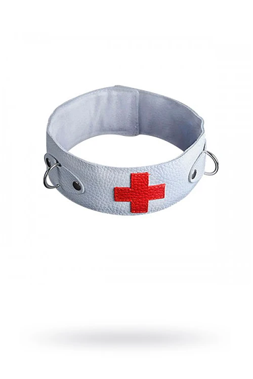 Изготовлен из натуральной кожи с велюровой подкладой, регулируется с помощью ремешка и пряжки. Размер: длина 50 см, ширина 5,2 см. Цвет белый.