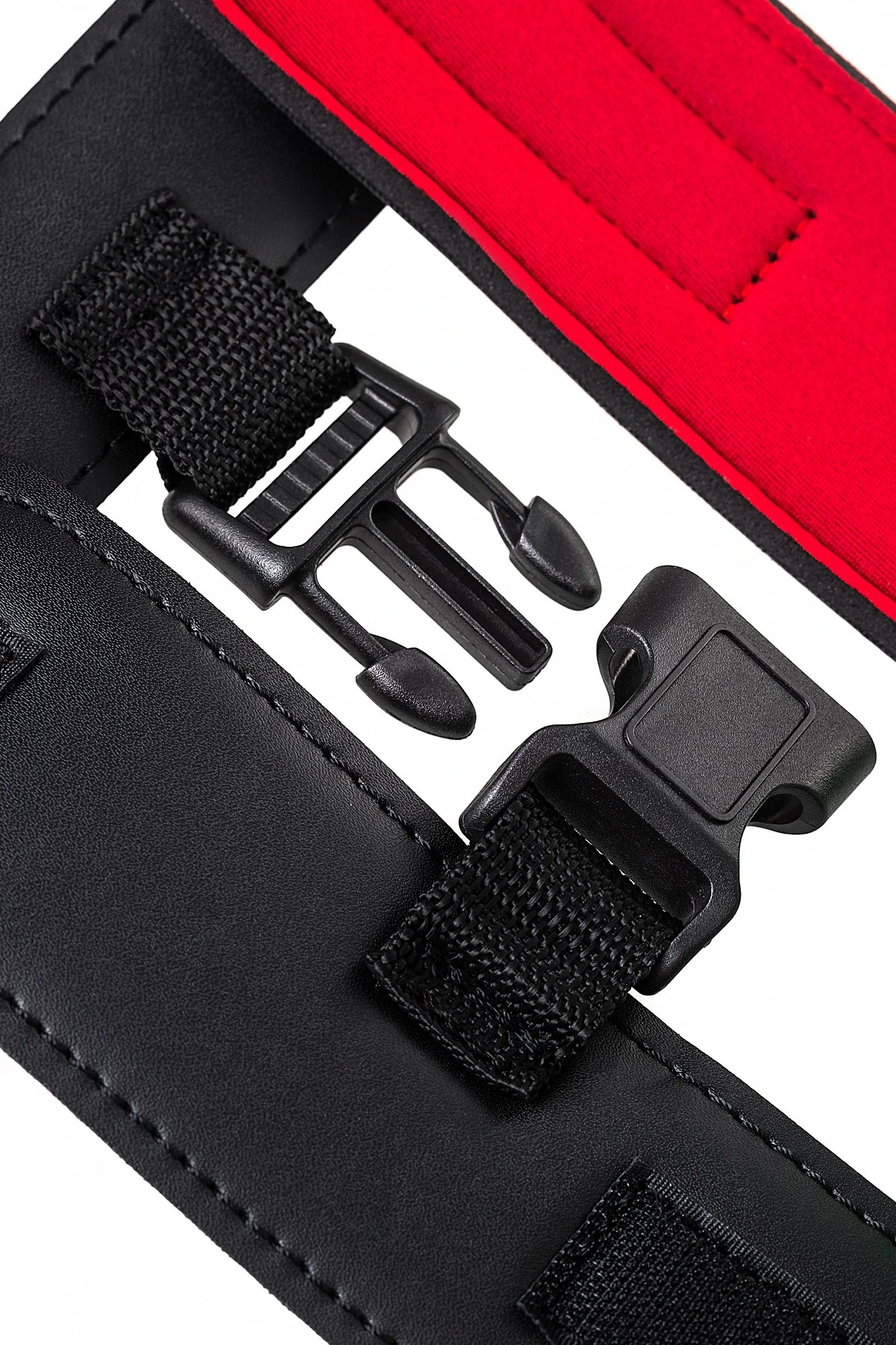 Ошейник с наручниками Современный комплект из мягкого материала комфортно обовьет шею и ограничит свободу рук. Застежка велкро (липучка) дает возможность использовать его партнером любого размера, так что меняйтесь ролями в зависимости от настроения! Пластиковые карабины на ошейнике и наручниках надежно фиксируют руки совсем рядом с шеей, не оставляя никакой свободы действий. С таким комплектом ограничить движения партнера легко в любом месте. Этот строгий аксессуар скрывает внутри страстный красный цвет так же, как вы скрываете свое увлечение БДСМ в обычной жизни. Управляйте друг другом, ограничивая свободу партнера, но не ограничивая своих сексуальных желаний. Длина ошейника 44 см. Ширина ошейника 4,5 см. Длина наручников 22 см. Ширина наручников 6 см. Застежка: липучка. Материал: искусственная кожа.
