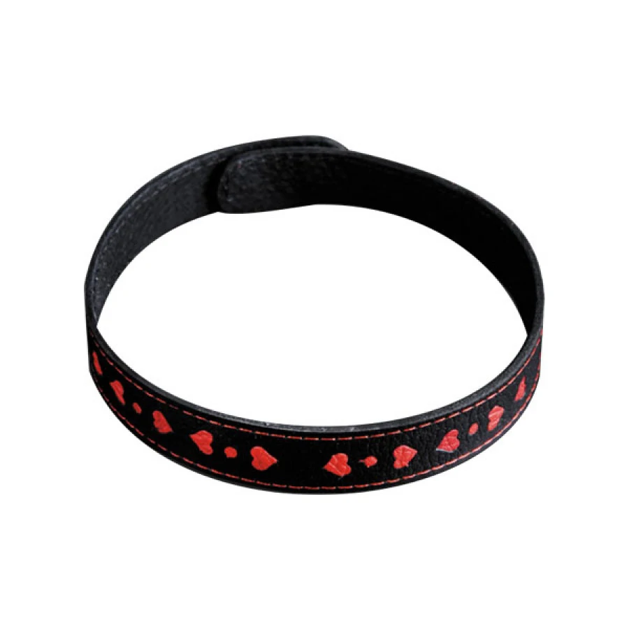 Изготовлен из натуральной кожи с велюровой подкладой. Украшен оригинальной аппликацией в форме сердечек. Ширина ошейника 20 мм. Размер универсальный.