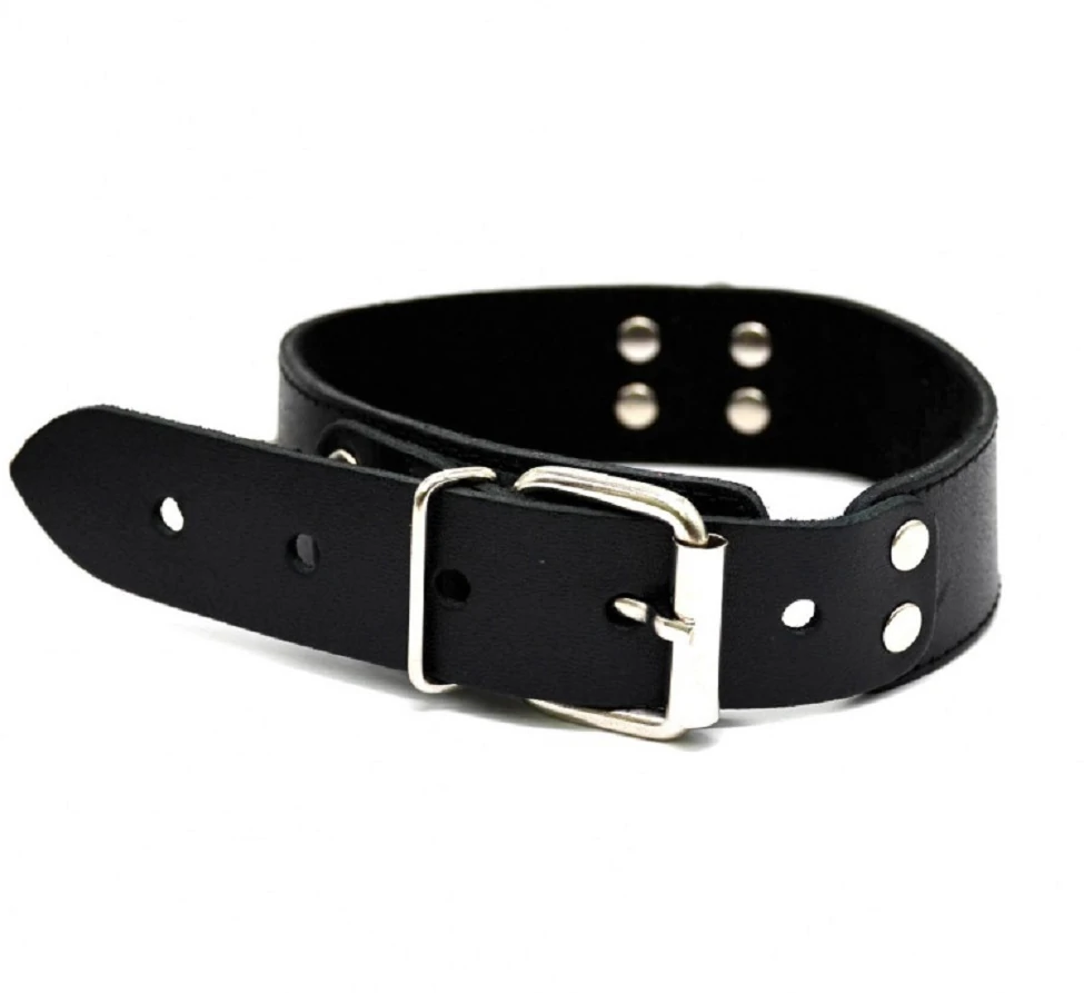 Кожаный ошейник Sitabella – это строгий и лаконичный аксессуар BDSM, способный вызвать эмоционально-сексуальное возбуждение, лишь своим нахождением на теле секс-партнёра. Чёрный ошейник из толстой натуральной кожи, ширина составляет 3 см. Накладка с клепками и полукольцом является брутальным декором и используется для присоединения поводка к ошейнику.Поводок в виде кожаной ленты с карабином с одной стороны и колечком с другой, длина 35 см. Размер изделия регулируется металлической пряжкой. Размер: общая длина ошейника 42 см, ширина 3 см. Цвет черный.