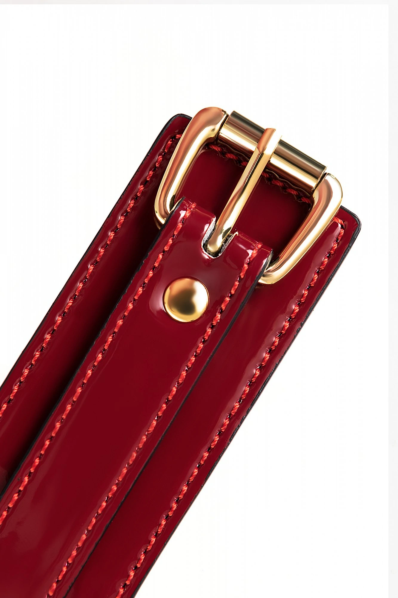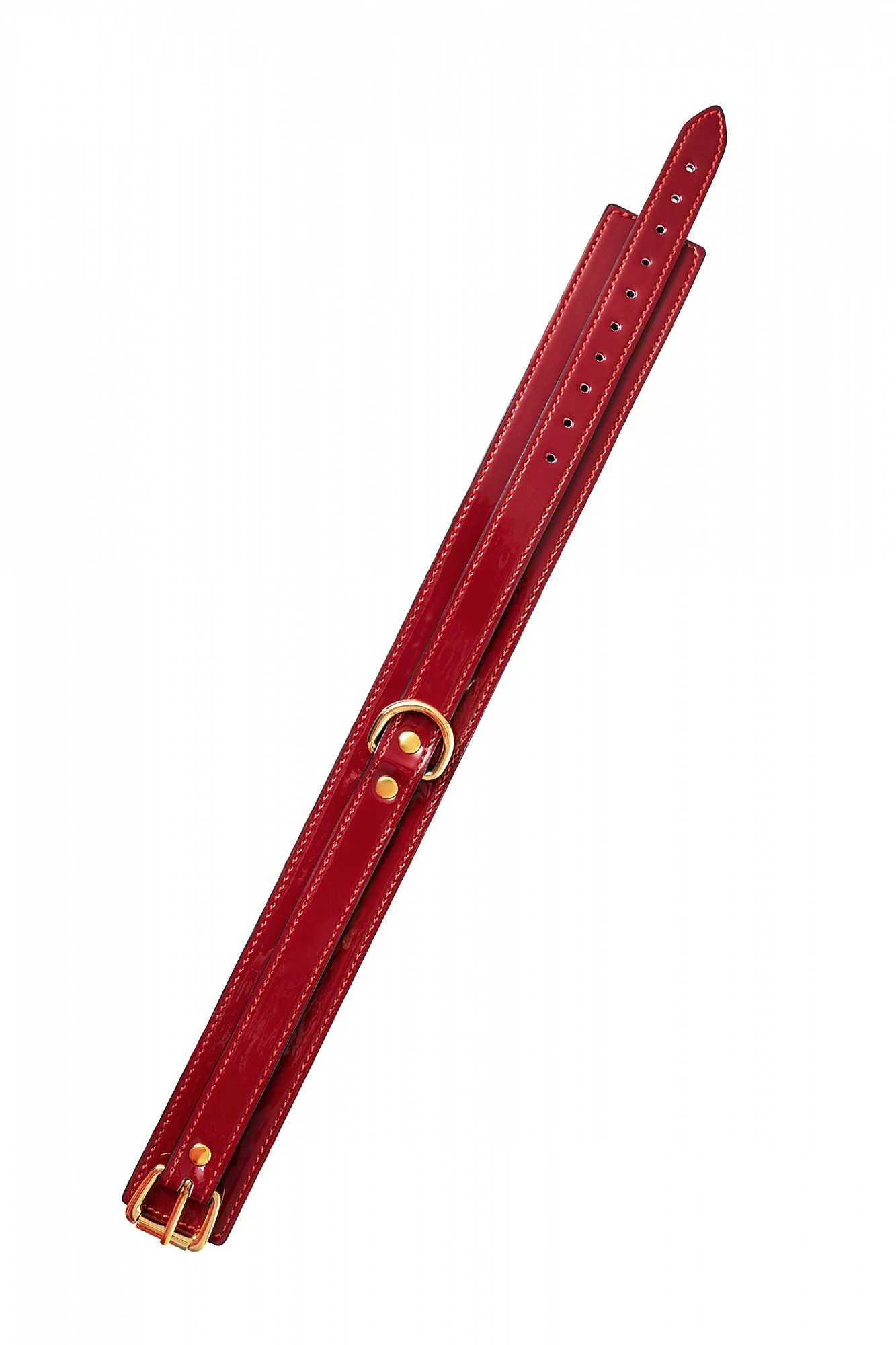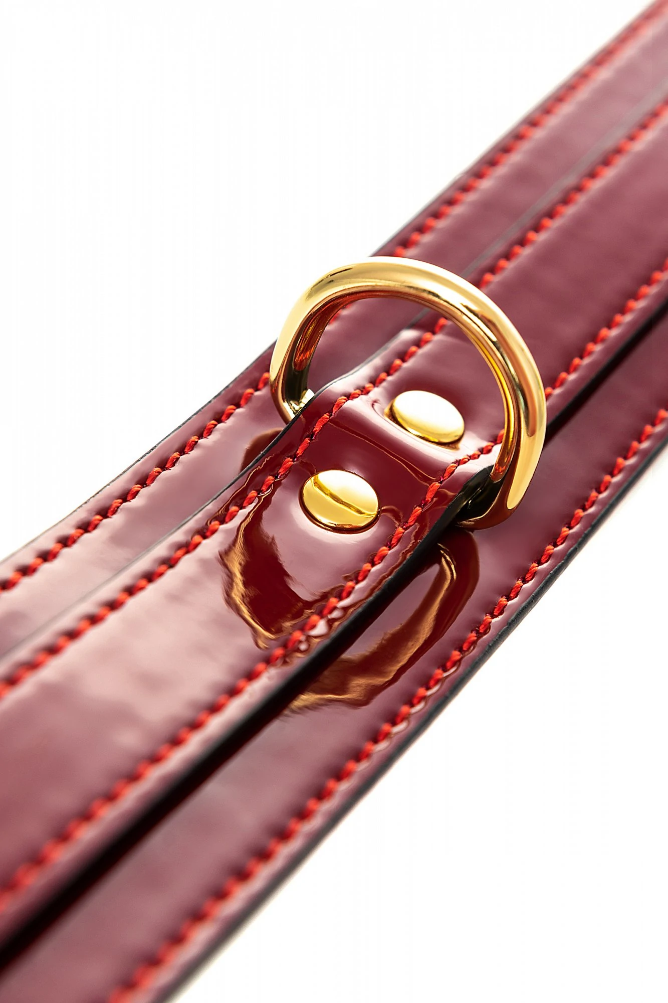 Ошейник винного цвета – всегда обольщение и восхищение. Играйте и подчиняйтесь красиво! Для этого был создан ошейник из лакированного материала благородного винного цвета с металлической отделкой золотого цвета. Он демонстрирует утонченный вкус обладателя, одновременно являясь достаточно строгим атрибутом БДСМ-тематики. Он достаточно жестко обхватывает шею, зато в нем вы всегда будете слушаться своего Господина без возможности опустить голову. Кольцо на ошейнике позволяет дополнить игру поводком или другими необходимыми аксессуарами. Размер регулируется металлической пряжкой. Длина ошейника 41 см. Ширина ошейника 4 см. Материал: искусственная кожа.