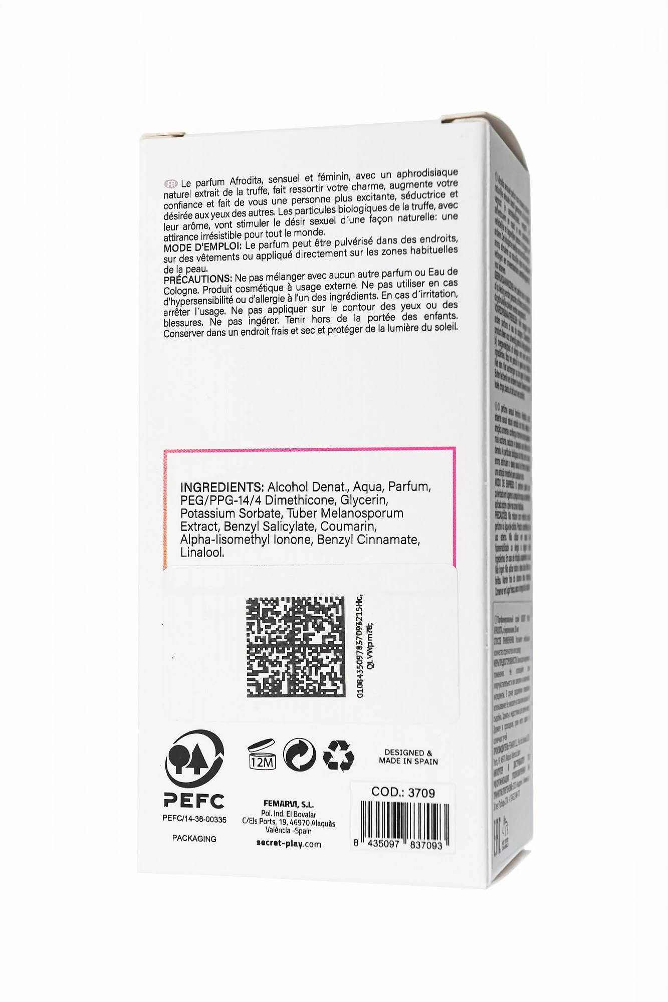 Парфюмированный спрей Aphrodita от испанского бренда Secret Play это ключ к раскрытию вашей истинной чувственности и сексуальности. Вдохновленный природной силой трюфеля, одного из самых мощных афродизиаков, этот аромат подчеркивает вашу магнетическую привлекательность и усиливает уверенность в себе, превращая вас в объект непреодолимого желания. Aphrodita дарит соблазнительный шлейф сладкой карамели, который мягко обволакивает и пробуждает ваши природные чары шлейф, который сопровождает вас в течение всего дня. Каждая капля этого аромата словно невидимое прикосновение, создающее ауру соблазна и возбуждения, усиливая вашу сексуальность в глазах окружающих. Его биологически активные частицы естественным образом стимулируют сексуальное влечение, заставляя ваше присутствие быть по-настоящему незабываемым. Объем: 50 мл.