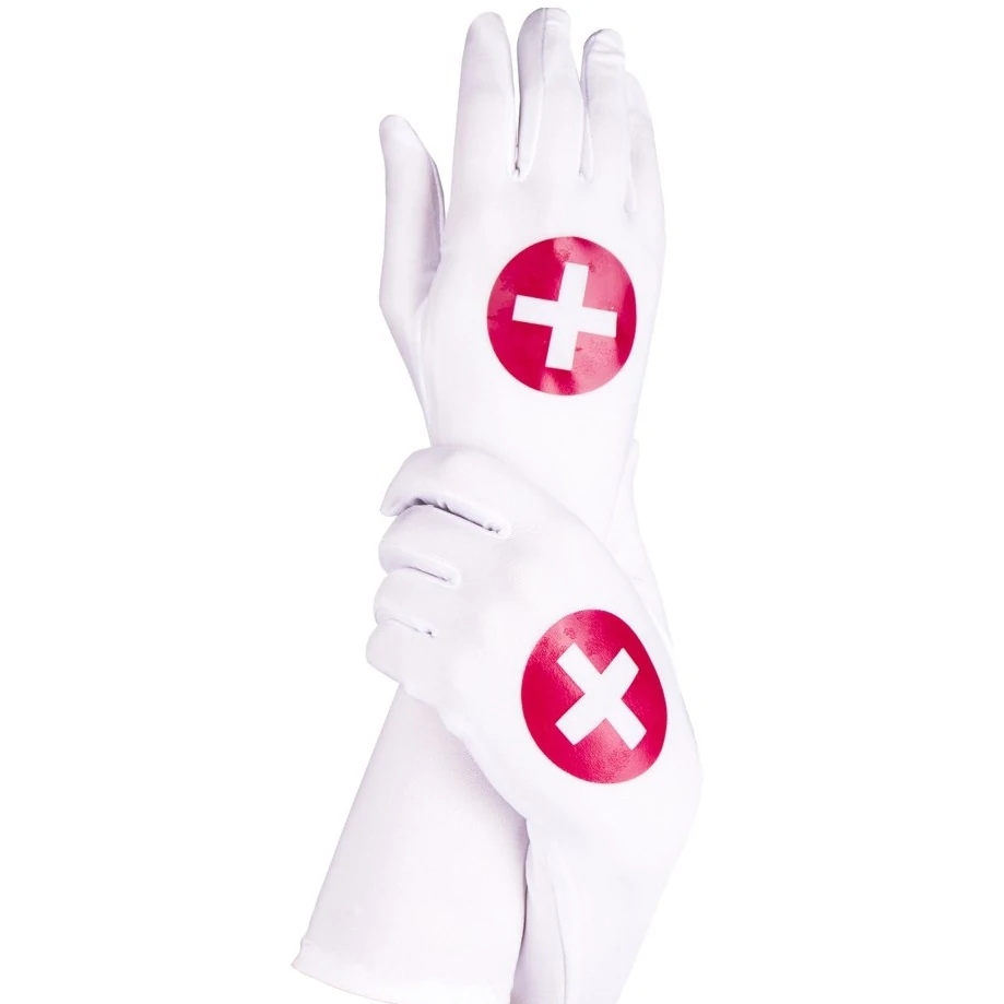 Белые длинные перчатки с крестом под костюм медсестры. Материал: 92% нейлон, 8% эластан. Длина общая 42 см. Размер: универсальный. Цвет: белый.