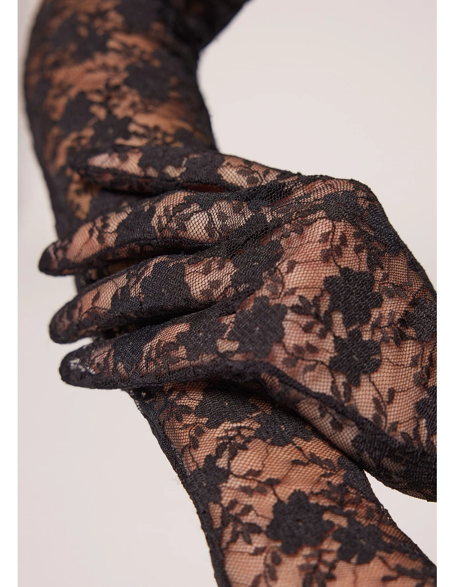 Очень легкие элегантные гипюровые черные перчатки декорированные цветочным орнаментом. Их длинна и облегающий покрой чувственно окружит Вас лестью и подчеркнет женственность. Материал: 90% нейлон, 10% эластан. Длина общая 45 см. Размер: универсальный. Цвет: черный.