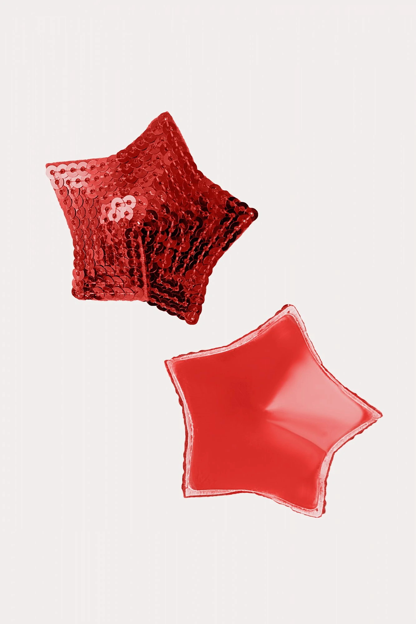Наклейки на соски многоразовые. Однотонные. Конус выполнен из полиуретана, внутри - слой силиконового геля. Декор: пайетки. Размер основания: 6 см. Наклеивать на чистую кожу без следов косметических средств. Снимать осторожно. После использования внутреннюю сторону промыть теплой водой. Хранить, изолировав клейкий слой пленкой или приклеив к стеклянной поверхности (зеркалу). Не использовать при гиперчувствительности к силикону, нарушениях пигментации или повреждениях кожи груди.