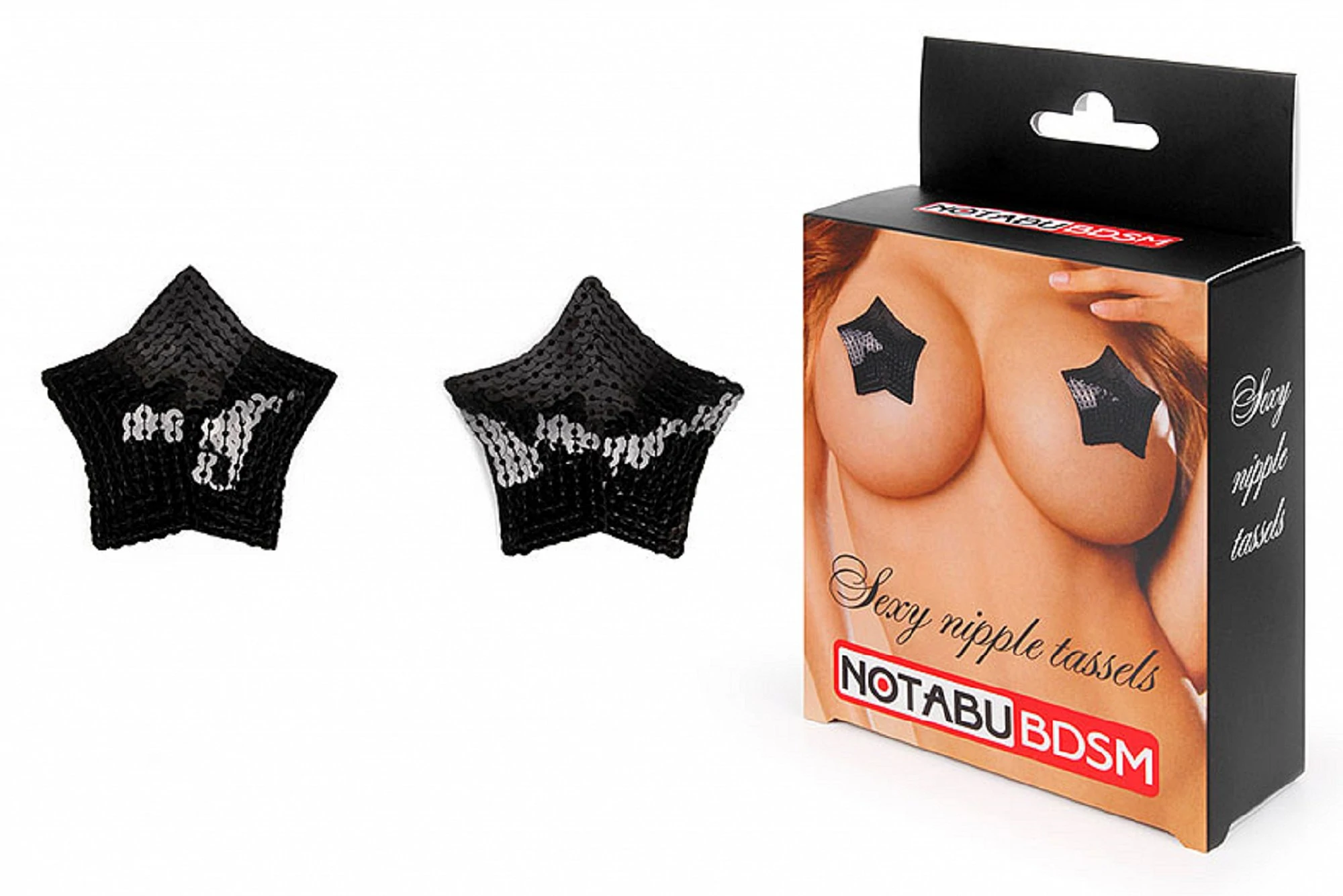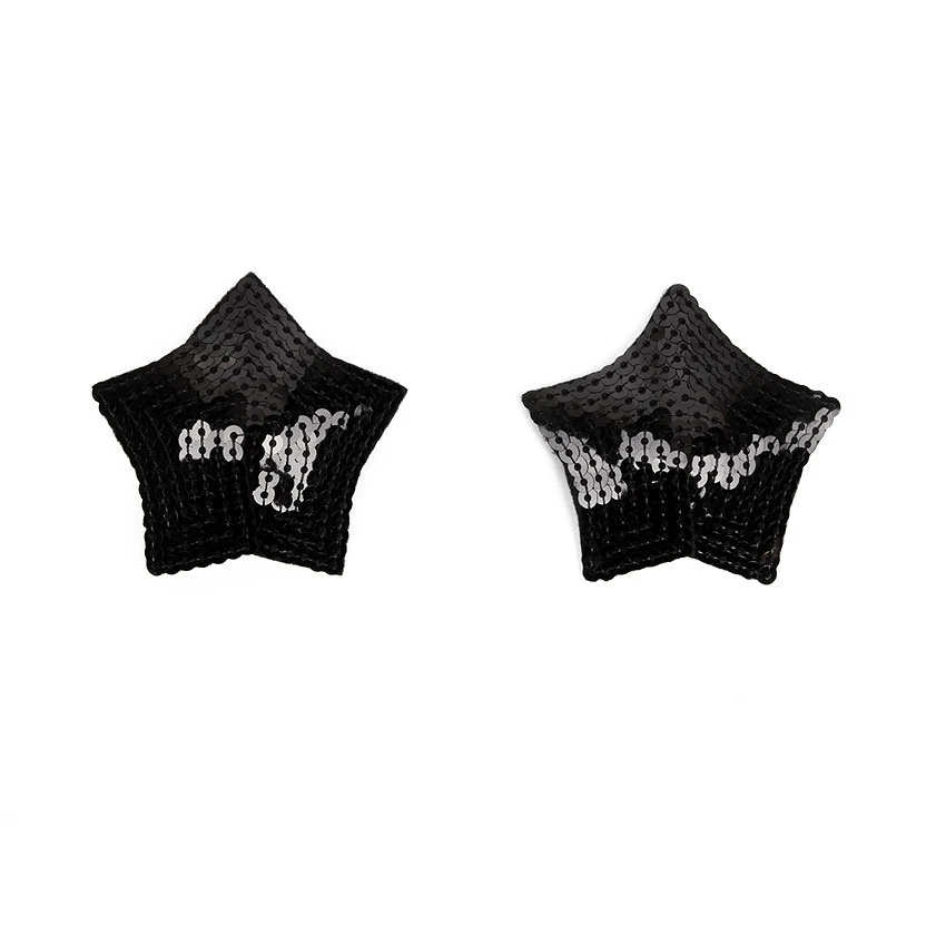 Добавить изюминку в любовную игру помогут оригинальные пэстисы в виде звёздочек. Они украсят соски, сделав грудь привлекательной и манящей. Внешняя сторона изделий отделана пайетками. На внутренней имеется специальный силиконовый слой, за счёт которого аксессуары держаться на сосках.