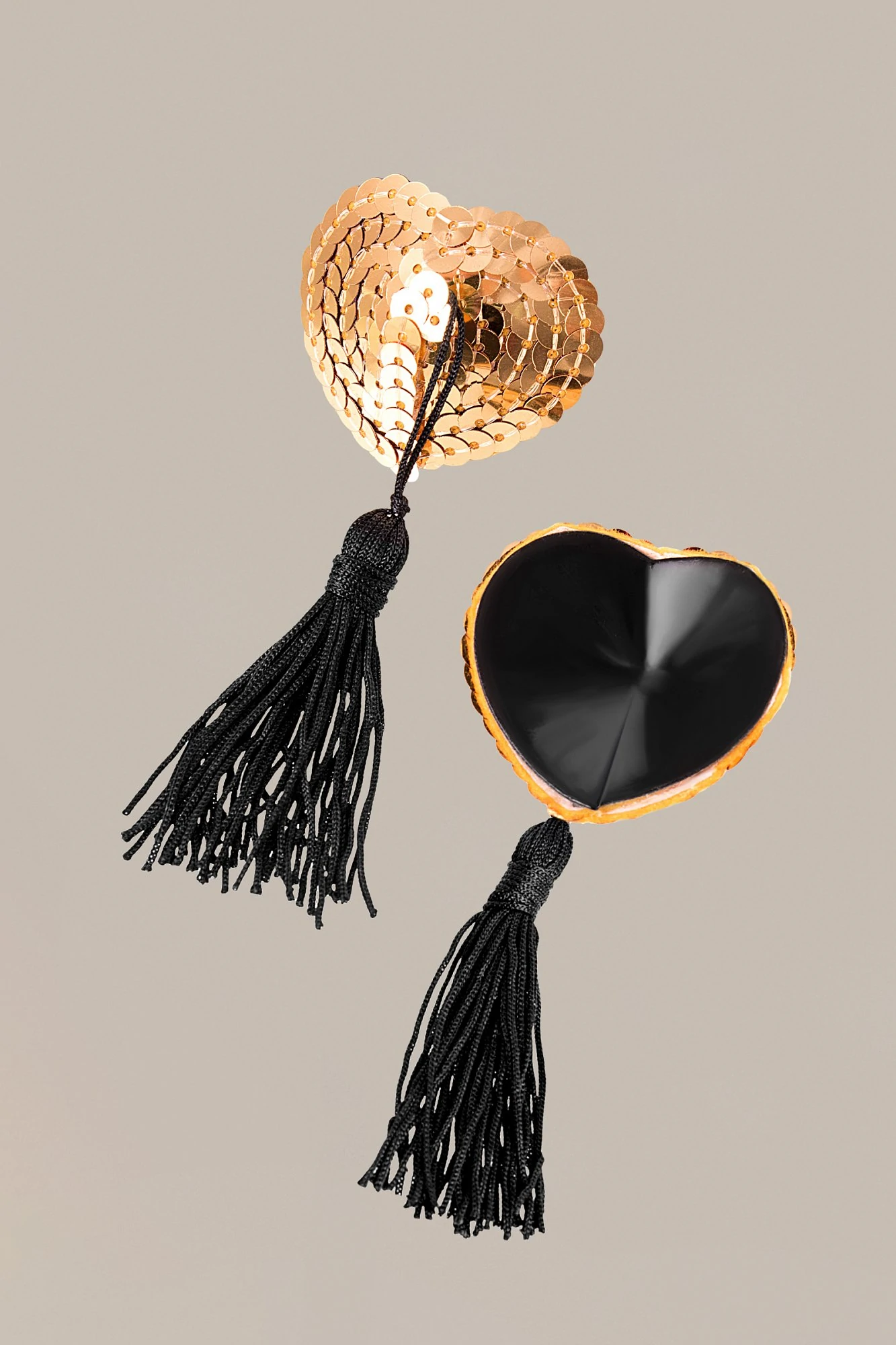 Наклейки на соски многоразовые. С контрастными кисточками. Конус выполнен из полиуретана, внутри — слой силиконового геля. Декор: пайетки, кисточки.Диаметр основания: 5 см. Длина кисти: 11 см.Рекомендуется наклеивать пэстис на чистую кожу, без следов косметических средств. Во избежание болевых ощущений снимать осторожно. После применения внутреннюю клеящуюся поверхность промыть теплой водой, обсушить. Хранить, изолировав клейкий слой пищевой пленкой или приклеив к гладкой стеклянной поверхности (зеркалу). Не использовать при гиперчувствительности к силикону, нарушениях пигментации или повреждениях кожи груди.