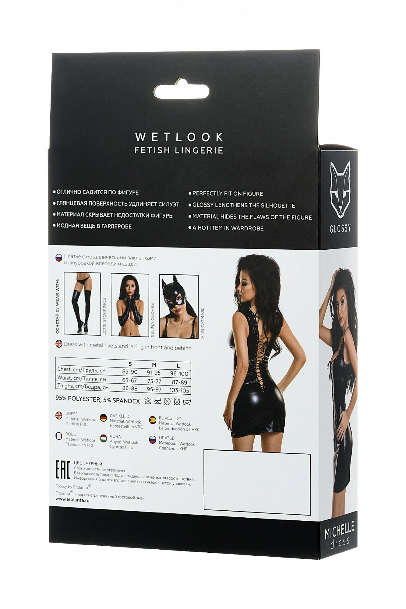 Встречайте новую, долгожданную и блестящую коллекцию белья из популярного материала Wetlook – Glossy. Отлично садится по фигуре.- Глянцевая поверхность визуально удлиняет силуэт. Плотный материал скроет мелкие недостатки фигуры. Модная вещь в сексуальном и базовом гардеробе. Платье с металлическими заклепками и шнуровкой спереди и сзади. Обтягивающий крой облегает фигуру и скрывает её мелкие недостатки. Играйте с образом при помощи шнуровки:- затяните её потуже и сделайте акцент на груди - это сдержанный образ для клубного выхода. Ослабьте шнуровку и покажите больше тела своему поклоннику, особенно пикантно шнуровка смотрится на спинке.