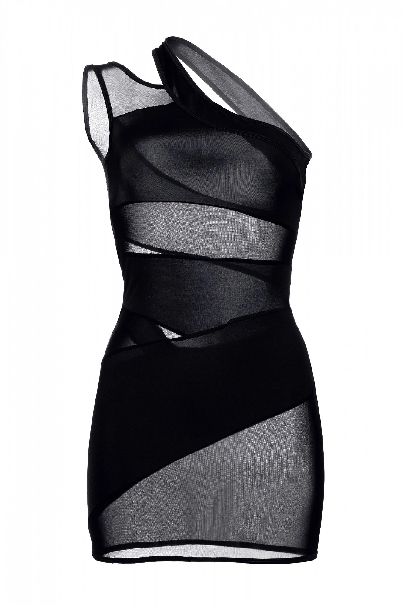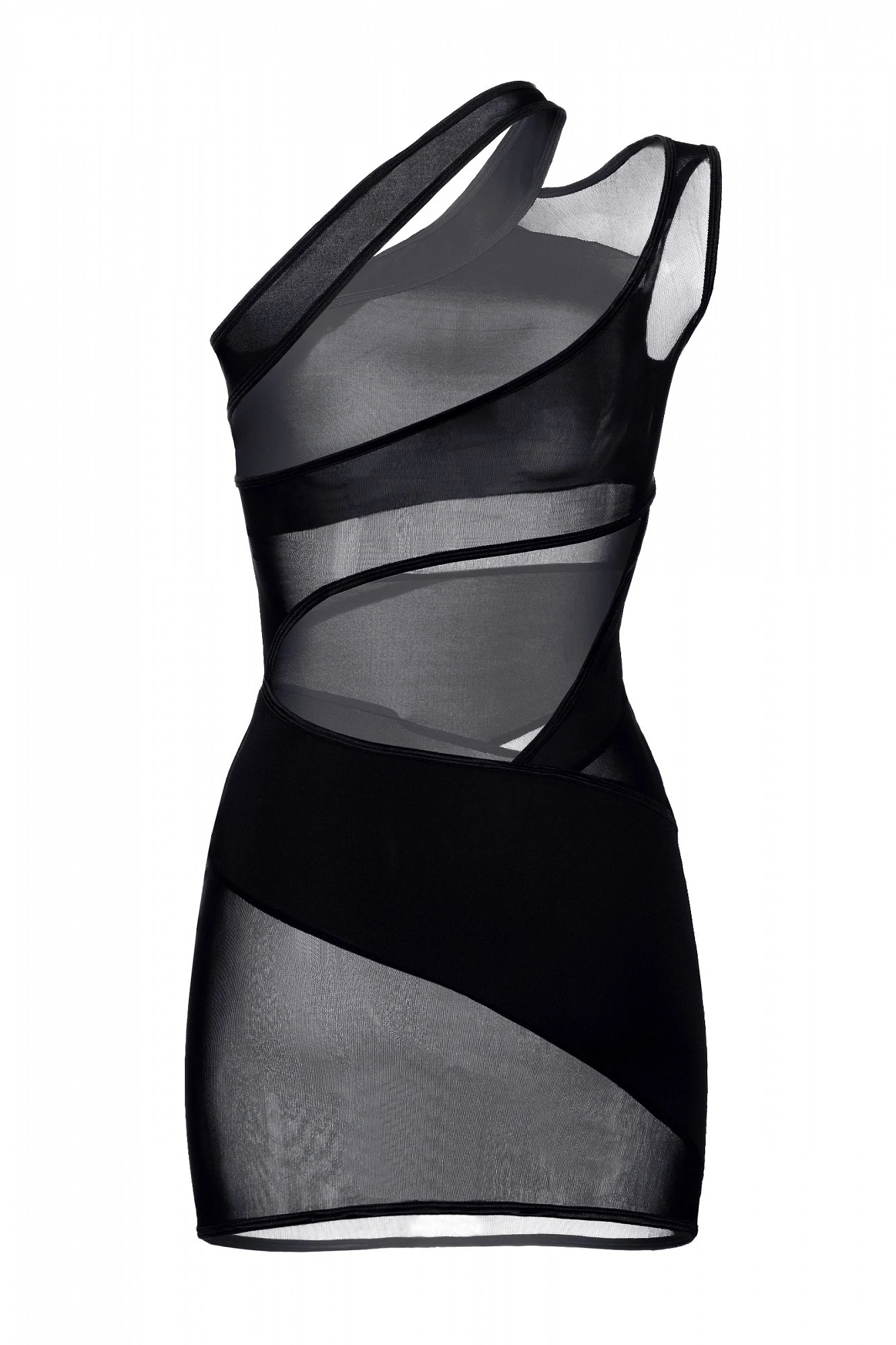 Платье с ассиметричными прозрачными вставками, с открытым плечом. Упаковка: полноцветная коробка с еврослотом (высота: 27,75 см, ширина: 17,7 см, толщина: 2,5 см, высота еврослота: 3 см)
