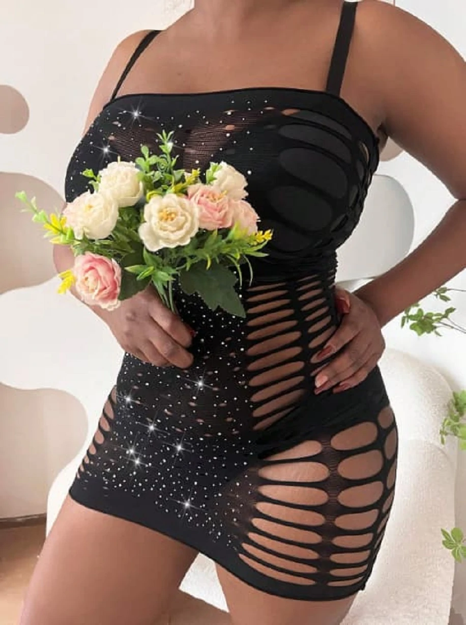Платье сетка Shans, украшенное спереди россыпью сияющих страз-Ваше оружие обольщения! Блеск страз мгновенно привлечёт внимание и этой ночью Вы станете звездой! Идёте ли Вы на свидание или блистаете на вечеринке-Вы всегда будете в центре внимания!