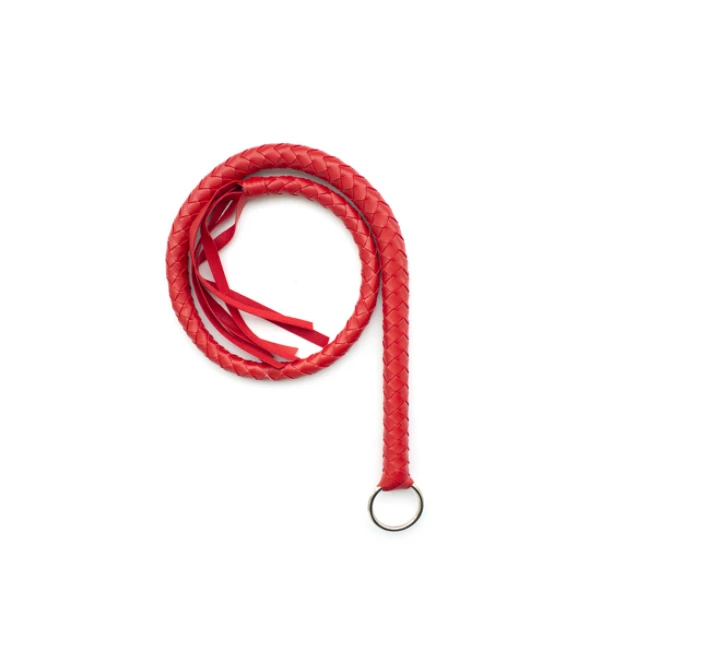 Однохвостая плеть имеет оплетенную жесткую рукоять и плетеное из мягкой кожи тело. Тело плети заканчивается узлом и хлопушкой из той же кожи. Размер: общая длина 100 см, длина рукояти 20 см, Длина хвостов 25 см. Цвет: красный.