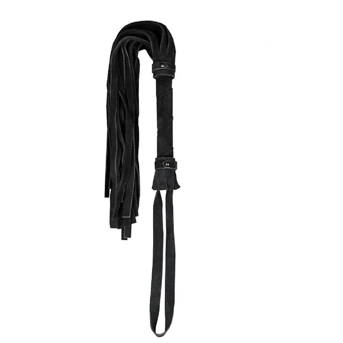 Плеть-флоггер – роскошный аксессуар для любителей БДСМ. Идеально походит для разогрева, а также в качестве элемента в ролевой игре. Интимный аксессуар изготовлен из мягкой велюровой кожи, что позволяет использовать его для флагелляции даже очень чувствительных частей тела. Длинные хвосты хорошо «ложатся» на кожу, обостряя все ощущения и возбуждая. Рукоятка обвита широкой лентой, не дающей флоггеру выскользнуть из руки даже при очень страстных движениях. Петля на рукоятке позволяет носить плеть на запястье или хранить в подвешенном состоянии. Интимный аксессуар можно использовать как для классической флагеляции, так и для нежных поглаживаний. Подойдёт для новичков или продвинутых пользователей. Размер: общая длина 55 см, длина ручки 13 см, длина хвостов 25 см, колличество хвостов 18 шт, ширина хвостов 0,7 см, диаметр рукоятки 1,6 см, длина ручки-петли 18,5 см. Цвет: черный.