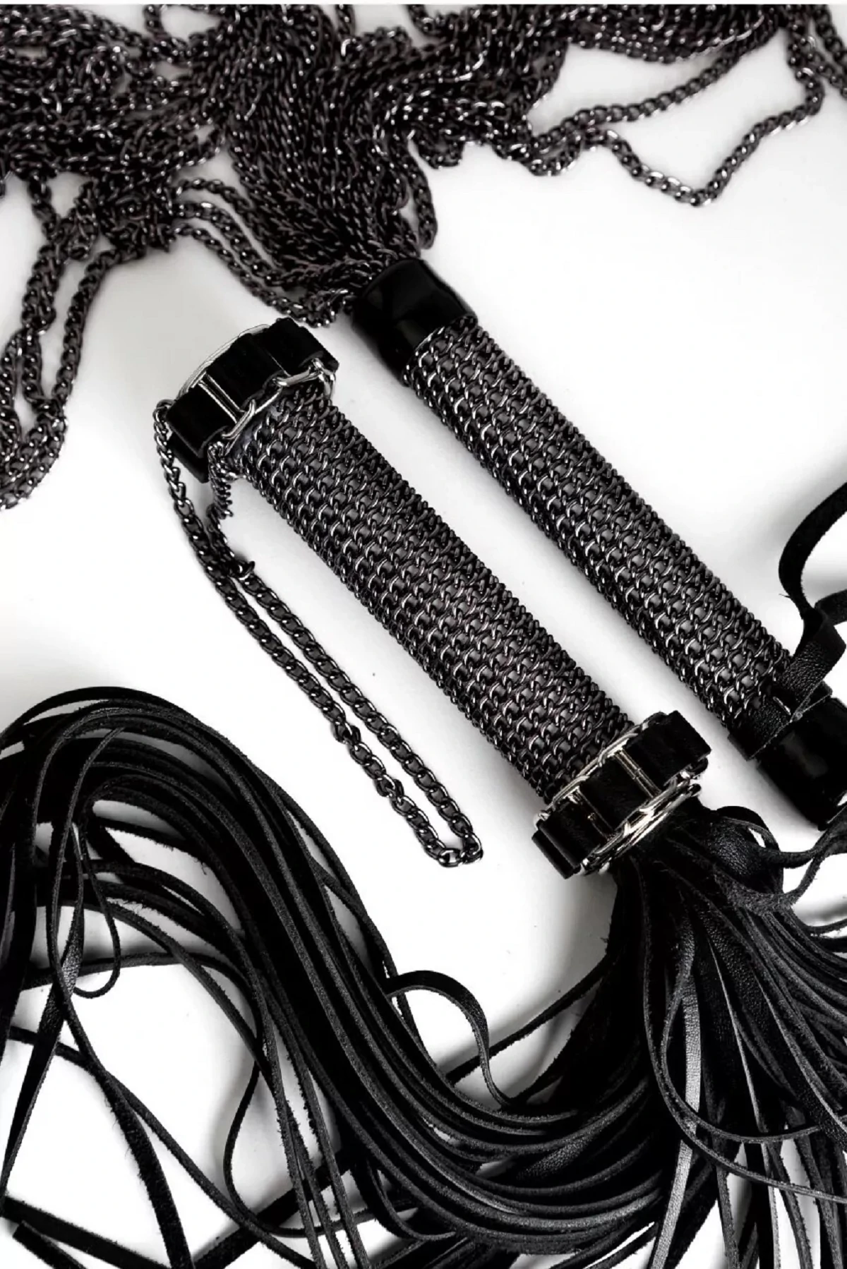 Эта плеть выполнена из высококачественной натуральной кожи и имеет элегантный дизайн. Черный цвет кожи и рукоятка из плетеной цепочки создают эффектный внешний вид, который подчеркнет вашу индивидуальность и добавит особого шарма к вашим играм. Общая длина плети составляет 75 см, что обеспечивает достаточное расстояние для комфортного использования. Плетка имеет 65 хлыстов, которые позволяют достичь разнообразия в ощущениях и степени боли. Вы сможете исследовать разные техники и стили игры, чтобы создать наилучший опыт для себя или своего партнера. Независимо от того, являетесь ли вы опытным любителем бдсм или только начинаете свое путешествие в этом направлении, наша плетка для бдсм из натуральной кожи обязательно добавит новые ощущения и дополнительный волнующий элемент в ваши ролевые игры. Размер: общая длина 75 см, длина ручки 17 см. Цвет черный.