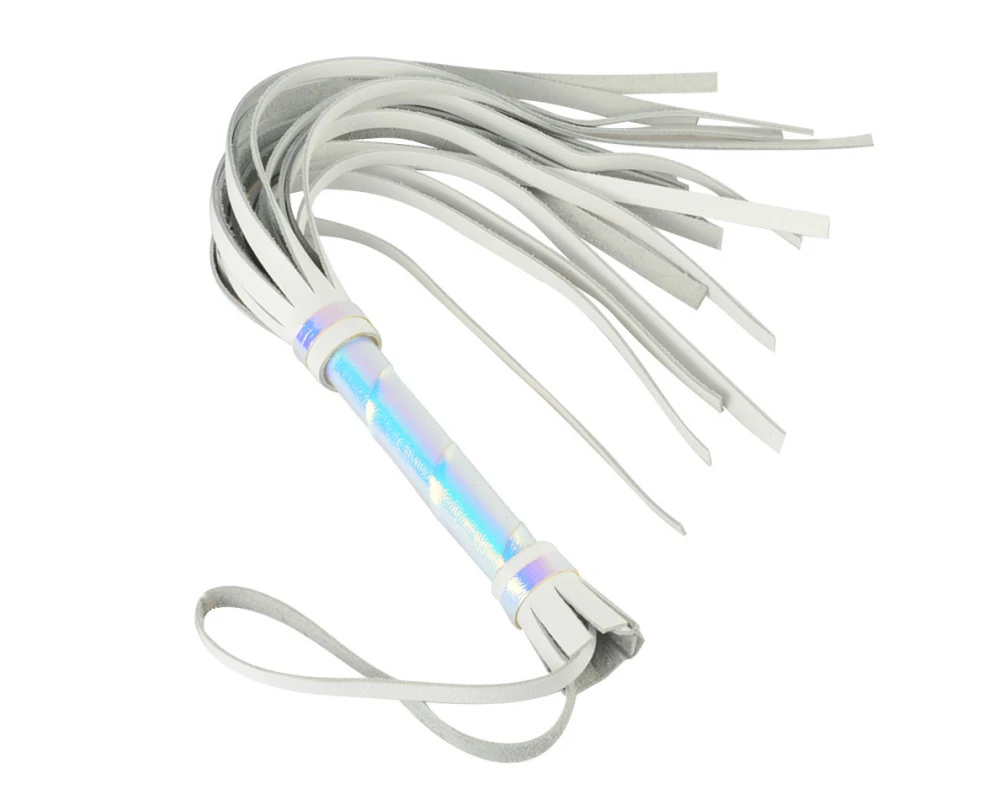 Если появилось желание испытать что-то новое и необычное в сексуальном плане, необходимо запастись специальными аксессуарами, которые помогут воплотить эфемерные фантазии в реальность. Для новичков желающих перемен, компания Sitabella предлагает прекрасный секс-аксессуар – плеть c декоративной голографической рукояткой. Плеть изготовлена из натуральной кожи белого цвета. Ударная часть плети имеет 20-22 плоских хвоста, это даёт возможность произвести качественную и комфортную флогеляцию. Тонкий ремешок-петля на торце ручки, позволяет освободить руки, перемещая девайс на запястье. Общая длина изделия составляет 40 см. Длина рукояти 10 см.