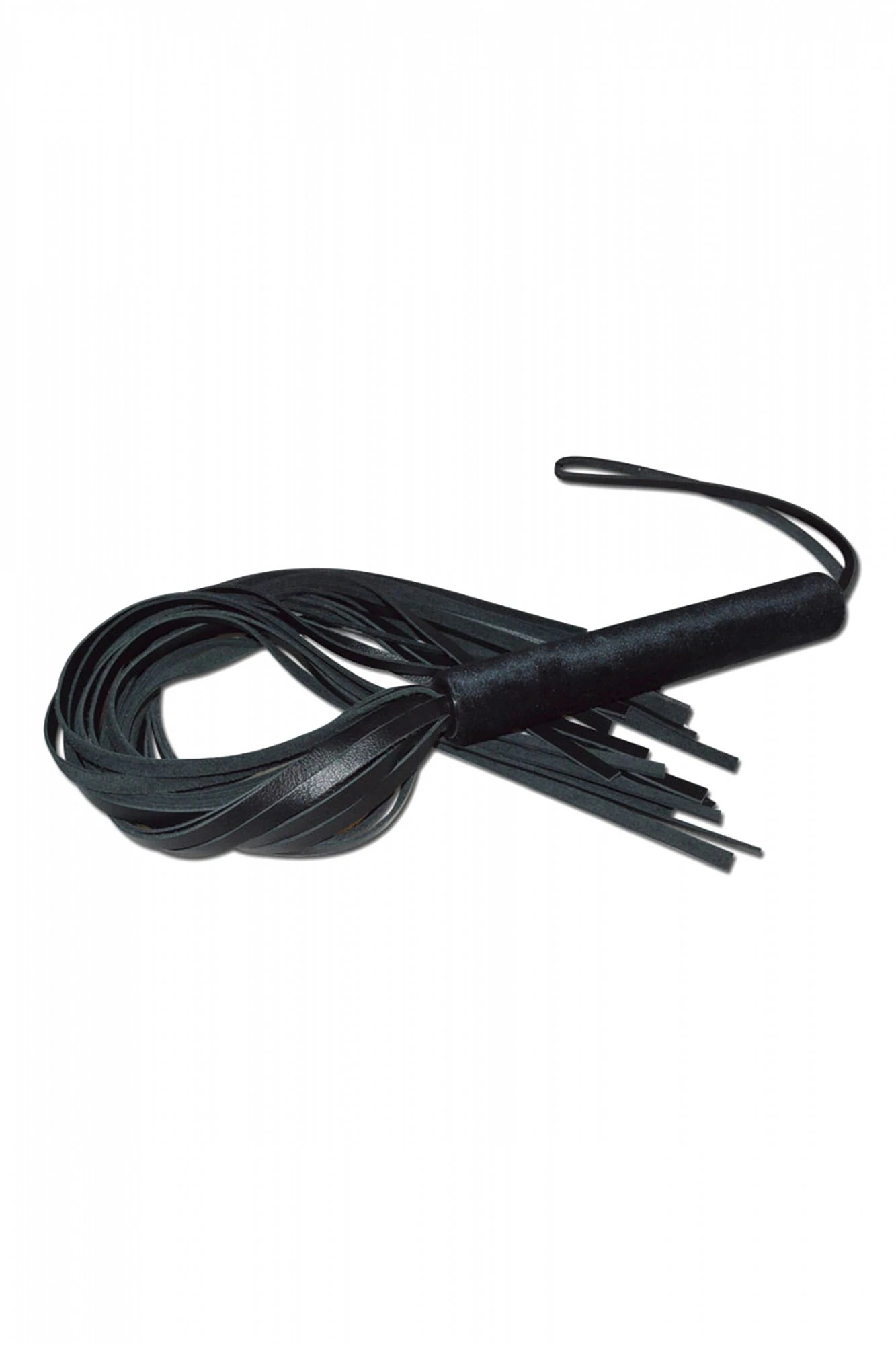 Классическая чёрная плеть – это один из основных атрибутов ролевых игр, при помощи которого, можно и поощрить, поглаживая, и наказать, более сильными ударами, и просто разогреть тело, для обострения тактильной и эмоциональной чувственности. Плеть имеет жёсткую 18 см ручку. Она обтянута бархатистой велюровой тканью. На конце рукояти располагается кожаная петля, для ношения плети на запястье или хранения изделия в подвешенном состоянии. Длинная 45 см хвостовая часть, состоит из 22-24 плоских лент из натуральной кожи Ладья, которые надёжно зафиксированы на рукояти, что даёт возможность использовать данный аксессуар в самых темпераментных и страстных ролевых играх. Хвосты плети довольно мягкие, что позволяет использовать данный девайс, не только опытным пользователям, но и новичкам. Размер: общая длина изделия около 63 см, длина рукояти 18 см. длина плеей 45 см, диаметр рукоятки 2,1 см