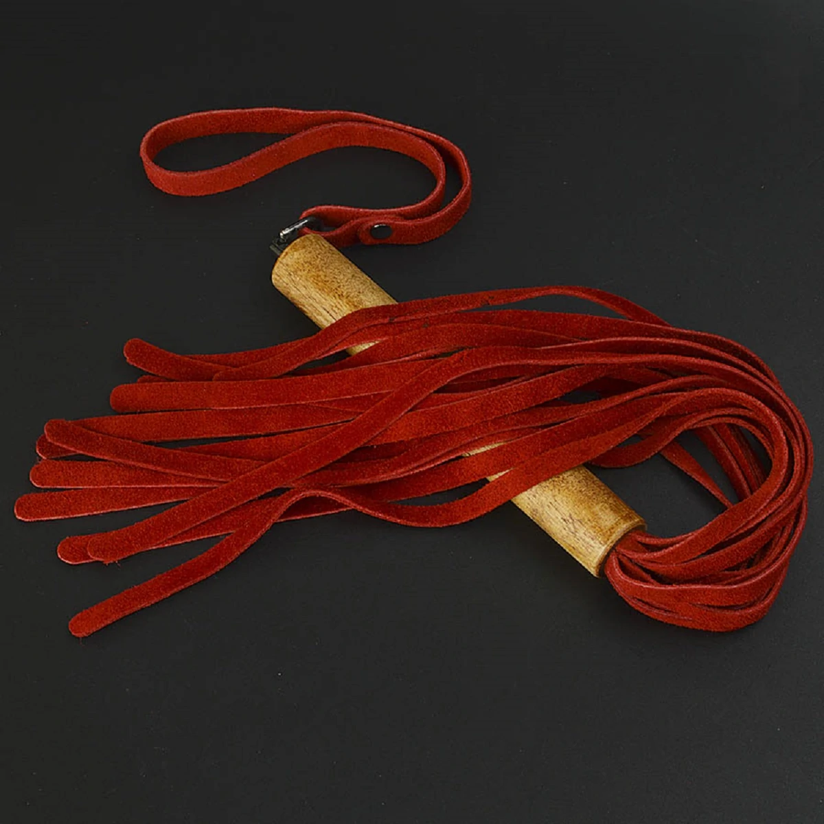 Небольшая классическая плеть – это один из основных атрибутов ролевых игр, при помощи которого, можно и поощрить, поглаживая, и наказать, более сильными ударами, и просто разогреть тело, для обострения тактильной и эмоциональной чувственности. Плеть серии Эко состоит из деревянной рукояти и ударной части, плоские мягкие ленты из натуральной велюровой кожи красного цвета. Количество хвостов - 14 штук. Размер: общая длина изделия около 44 см, длина рукояти 14 см, длина плетей 30 см. Цвет красный.