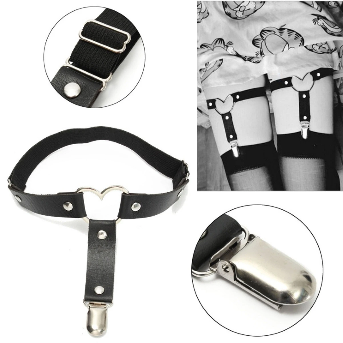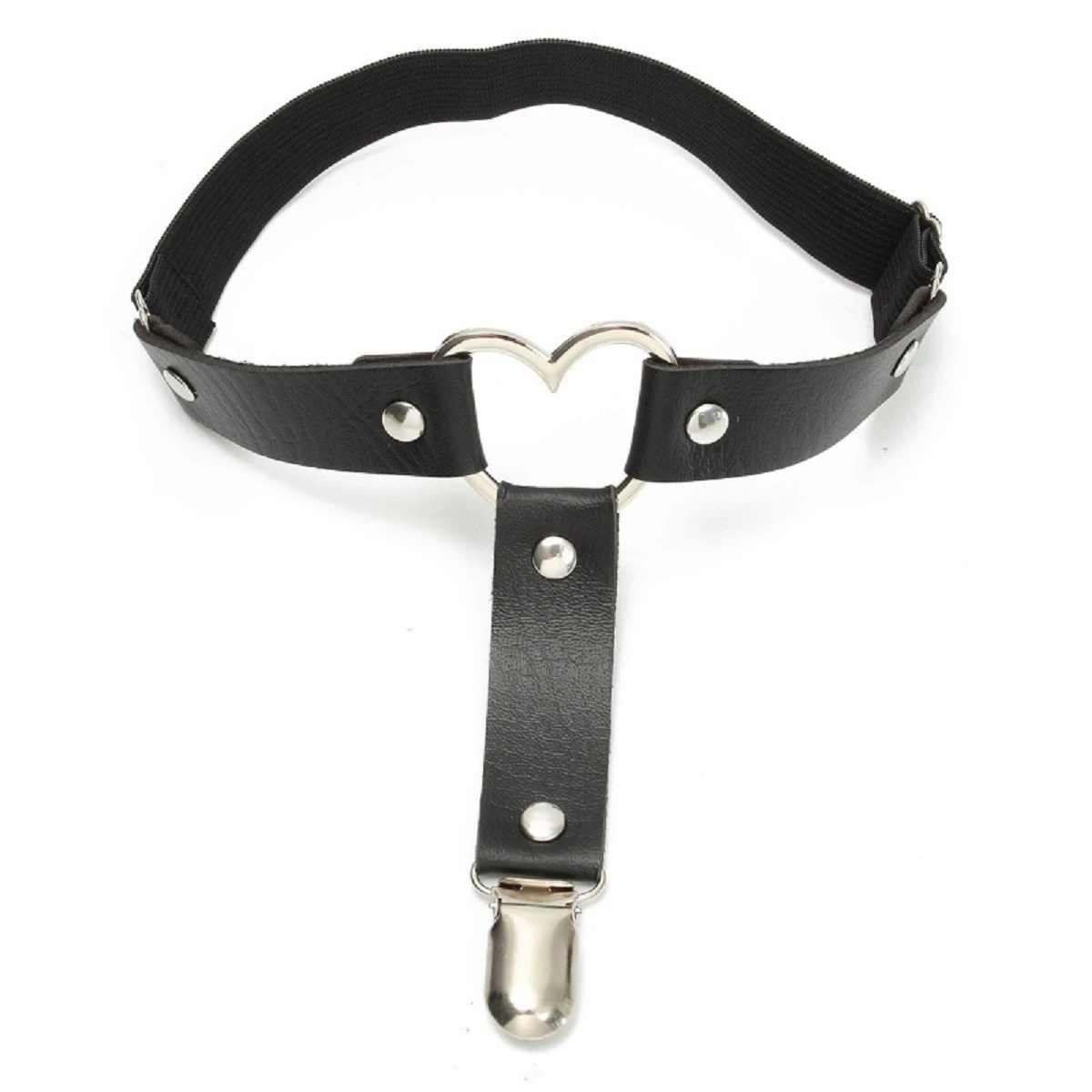 Подвязка для чулок Сердце сделана из мягкой искусственной кожи, сзади имеется резинка с регулятором обхвата повязки. Можно использовать как декоративную подвязку на ногу и приковать к себе внимание окружающих. Изделие оформлено металлическим украшением в виде сердца. Застёжки крепко держат чулок и не сломаются, т.к. изготовлены из металла. Размер: ширина 2 см. Цвет черный.