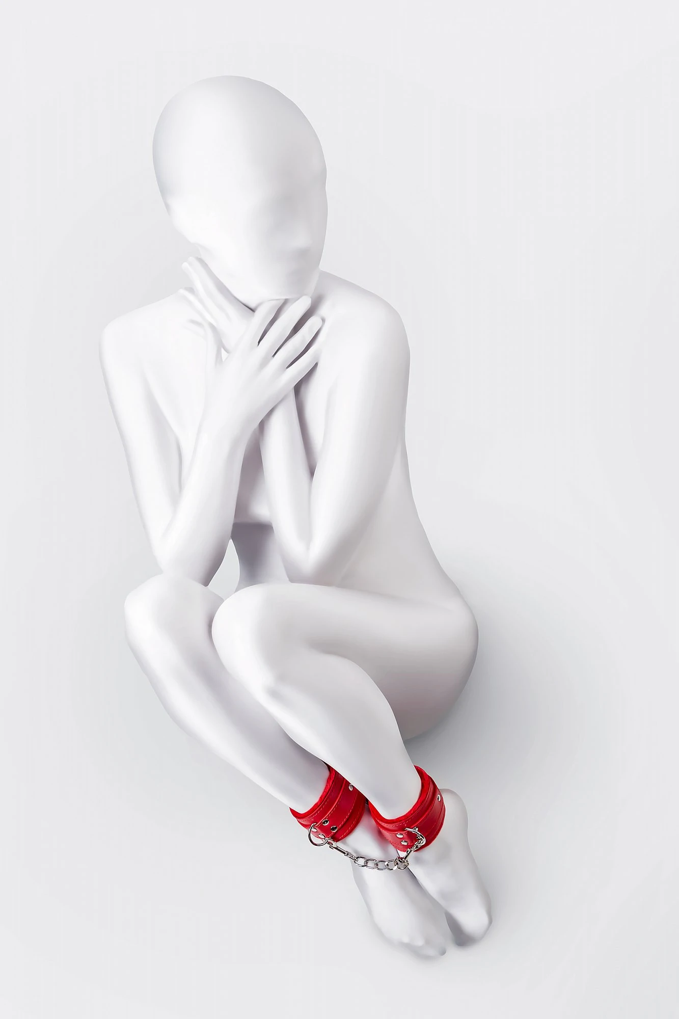Оковы на ноги яркого красного цвета с металлической отделкой говорят вовсе не об агрессии. Эти произведения искусства говорят о страсти, которую можно проявить, но только с разрешения Доминанта. Подклад из искусственного меха делает ношение этих оков более комфортным, но расслабиться в них не получится – цепочка на карабинах сильно ограничивает свободу действий. Длина поножей позволяет использовать их практически на любой размер ног. Отрегулировать размер и силу обхвата легко с помощью ремешка и металлической пряжки. Оковы – классический предмет для игры в подчинение, обязательный для начинающих и опытных поклонников БДСМ. Дополните комплект аксессуарами - ошейником, кляпом, наручниками и продемонстрируйте что значит грубое обращение и полный контроль над свободой. Материал: Искусственная кожа, металл. Цвет: красный. Длина: 27 см, ширина: 5,5 см, длина сцепки: 15,5 см.
