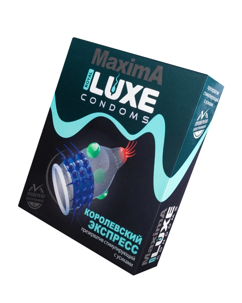 Luxe Maxima Королевский экспресс – латексный презерватив классической формы с пикантными вкраплениями и мягкими усиками. Они позволят ощутить каждую вибрацию разгоряченного тела партнера. Подарите себе и партнеру удовольствие шикарного секса. Этот "Королевский экспресс" стремительно ворвется в спальню искушенных партнеров, желающих познать все грани истинного наслаждения. Нежный материал контрацептива плотно окутывает раскаленную плоть, создавая в теле трепетное возбуждение от предстоящих интимных игр. Горячий вагинальный секс с подобным презервативом превращается в откровение экстаза, несущего сознание партнеров по волнам растущей экзальтации.