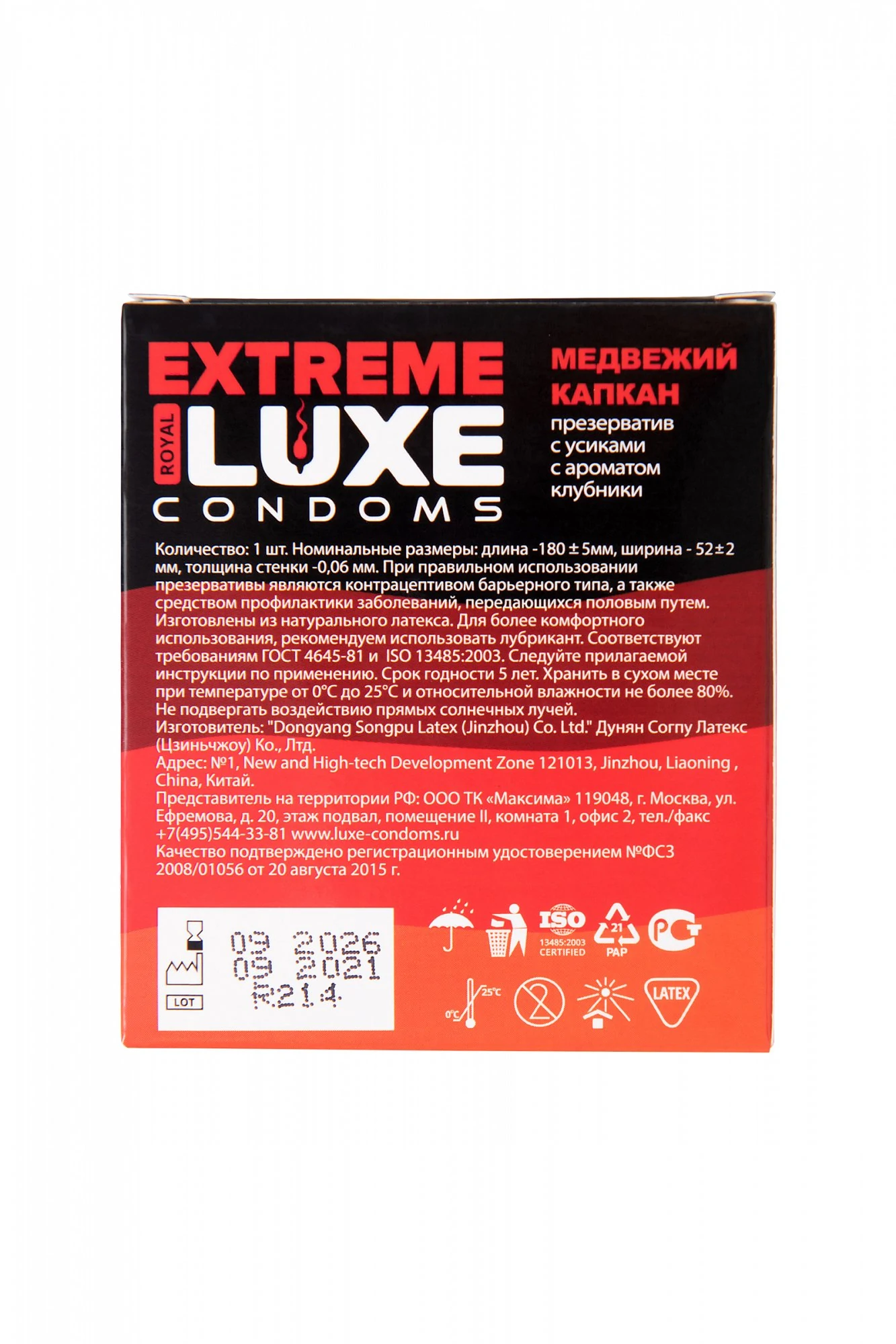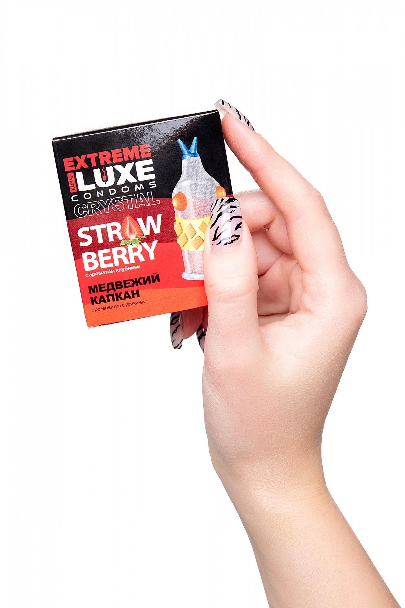 Презерватив Luxe EXTREME Медвежий Капкан с ароматом клубники создан специально для путешествия к удовольствию. Изысканный рельеф с ребрами и выпуклыми шариками позволит усилить стимуляцию, открывая новые грани взаимного наслаждения. Медвежий капкан - это мертвая хватка захватывающих ощущений от проникновения и движения. Аромат сладкой спелой клубники сделает процесс еще более сочным и волнующим. Смелый дизайн презерватива расширяет границы наслаждения. Качественный латекс, силиконовая смазка, ребристый рельеф. Протестировано электроникой. Размер: длина 18 см, ширина 5,2 см, толщина стенок 0,06 мм.
