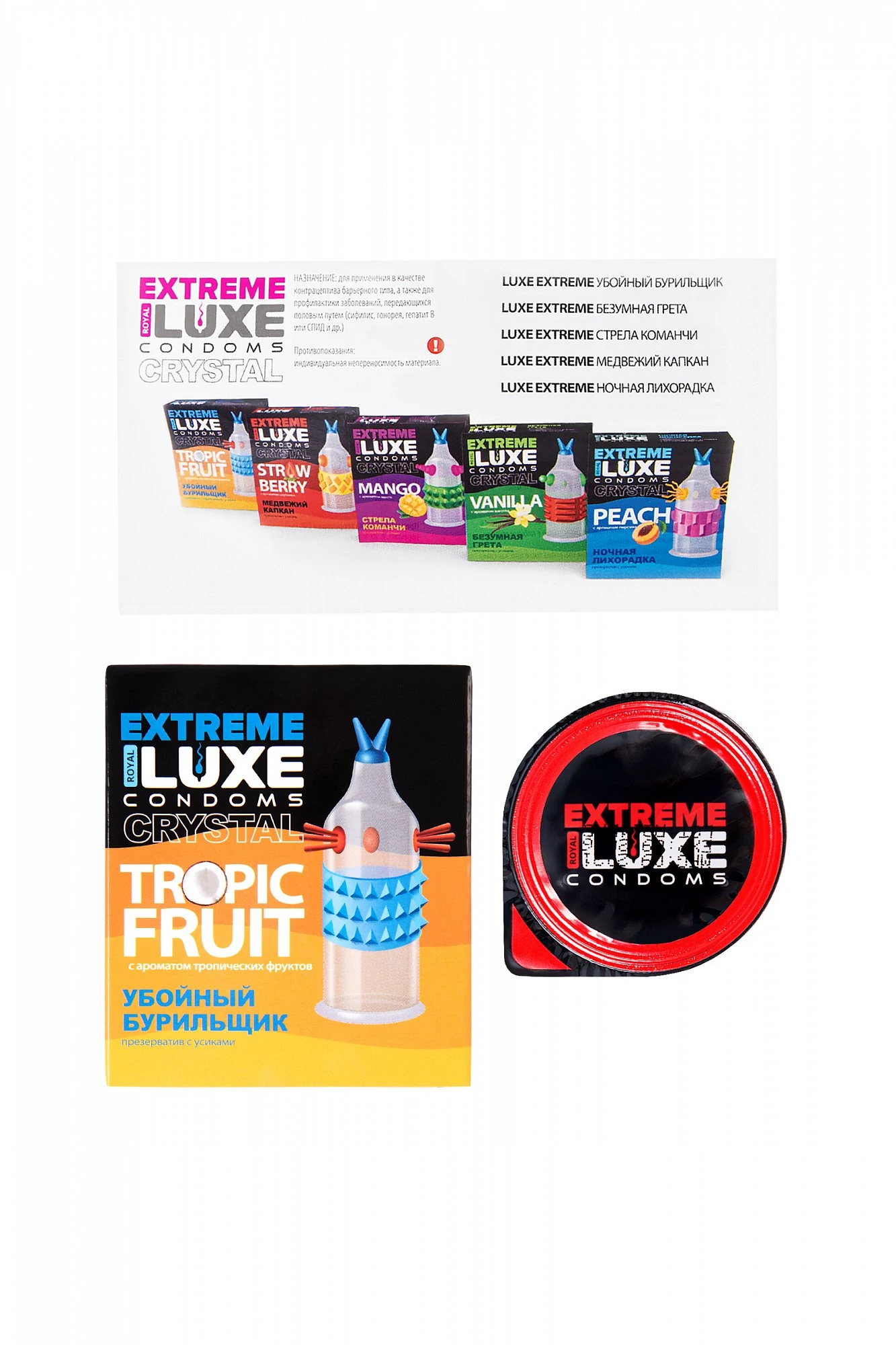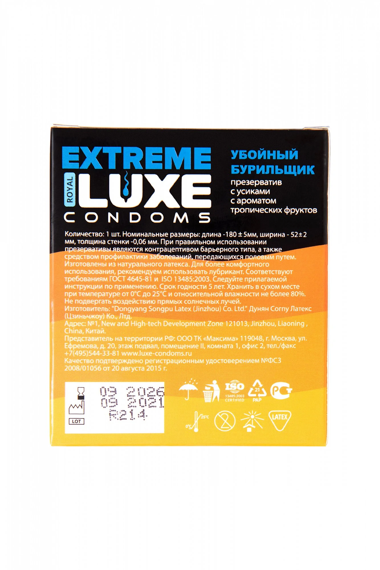 Сделать секс не только защищенным, но и экстремально восхитительным поможет презерватив Luxe EXTREME Убойный Бурильщик. Активная стимуляция с помощью зубчиков и усиков даст дополнительный импульс к достижению мощного оргазма. Самые чувствительные эрогенные зоны получат прицельное воздействие, чтобы гарантированно расширить границы привычных ощущений. Приятный аромат тропических фруктов дополнит чувственное удовольствие. Качественный латекс, силиконовая смазка, ребристый рельеф. Протестировано электроникой. Размер: длина 18см, ширина 5,2 см, толщина стенок 0,06 мм.