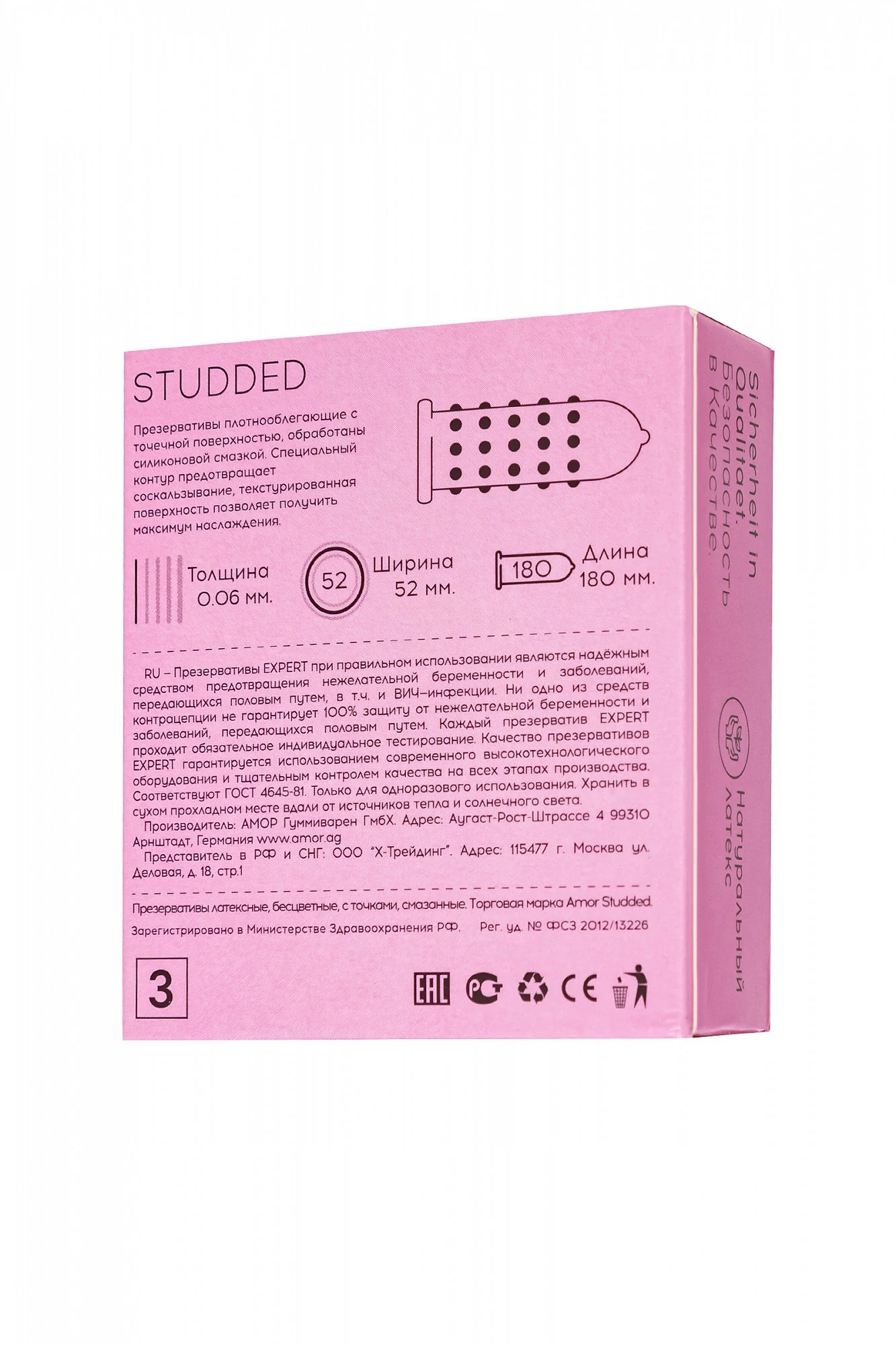 Презервативы Expert Studded с накопителем. Точечная структура поверхности презерватива обеспечивает дополнительную стимуляцию, доставляя исключительное удовольствие обоим партнерам. Размер: длина 18 см, ширина 5,2 см, толщина стенки презерватива: 0,06 мм. В упаковке 3 шт.