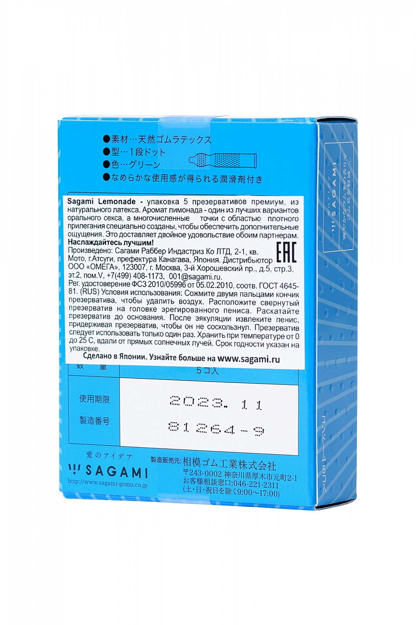 Японские латексные ароматизированные презервативы Sagami Studded Lemonade — это взрывной коктейль удовольствия. Их обильная точечная текстура дразнит эрогенные зоны деликатным возбуждающим массажем, насыщенный аромат лимонада делает оральный секс по-настоящему сочным, а забавный голубой цвет провоцирует на дерзкие эксперименты. Силиконовая смазка дарит долгое, комфортное скольжение и предотвращает появление натираний и микротрещин. По расчетам производителя, она в 10 раз эффективнее обычных силиконовых лубрикантов. Латекс высочайшего качества защищает от ЗППП и нежелательной беременности. Наполните секс лимонадным настроением презервативов Sagami Studded Lemonade, и сладкий оргазм вам гарантирован. Размер: длина 19 см, ширина 5,5 см. В упаковке 5 шт.
