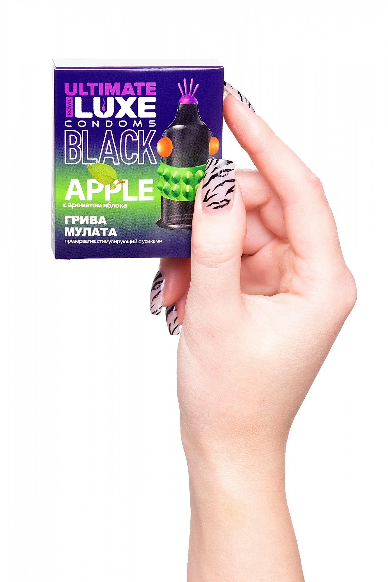 Большой и черный… Кто это? Пришло время воплотить потайные желания с участием мулата. Заставь ее содрогаться от вожделения, когда она увидит презерватив Luxe BLACK ULTIMATE Грива Мулата. Многообещающий рельеф стимулирует самые чувствительные зоны, а свежий аромат яблока пробуждает фантазию. Широкое кольцо с мягкими шипами и шарики гарантированно сделают секс незабываемым. Пора расширить границы наслаждения. Качественный черный латекс. Силиконовая смазка. Ребристый рельеф. Протестировано электроникой. Размер: длина 18 см, диаметр 5.2 см, толщина стенок 0,06 мм.