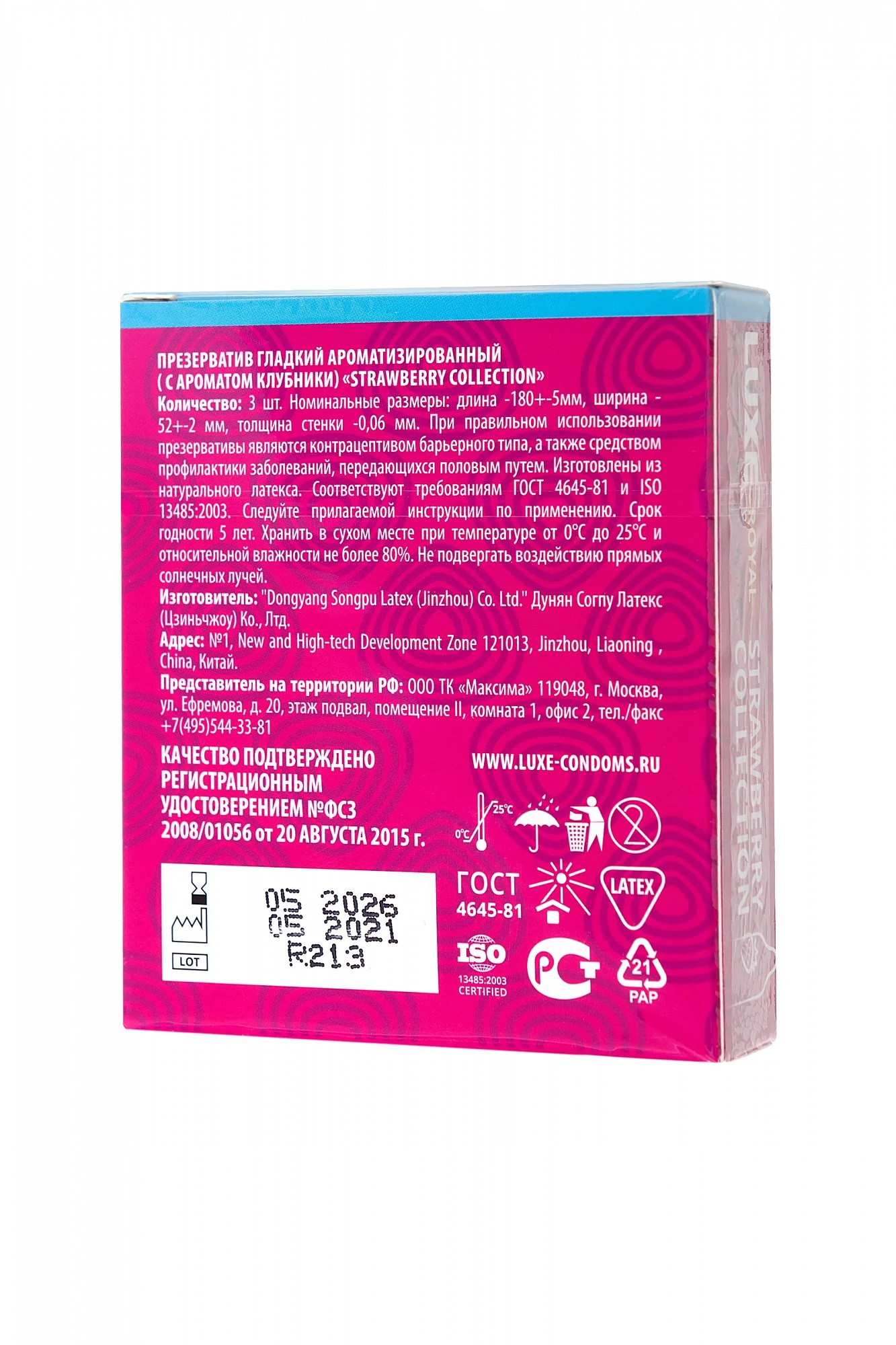 Классические презервативы Luxe Royal клубника - надежный метод защиты от преждевременной беременности и ЗППП и незаменимый помощник в любовных делах. Три латексных презерватива с накопителем и смазкой в яркой фирменной упаковке. Получить новые ощущения в отношениях и доставить максимальное удовольствие партнерше поможет ребристый рельеф. Наивысшее наслаждение от дополнительной стимуляции чувствительных участков. Силиконовая смазка для качественного и длительного скольжения. Надежность и безопасность использования этих контрацептивов подтверждены тестированием электроникой. Размер: длина 180 мм, ширина 52 мм, толщина 0,06 мм. Количество в упаковке 3 шт.